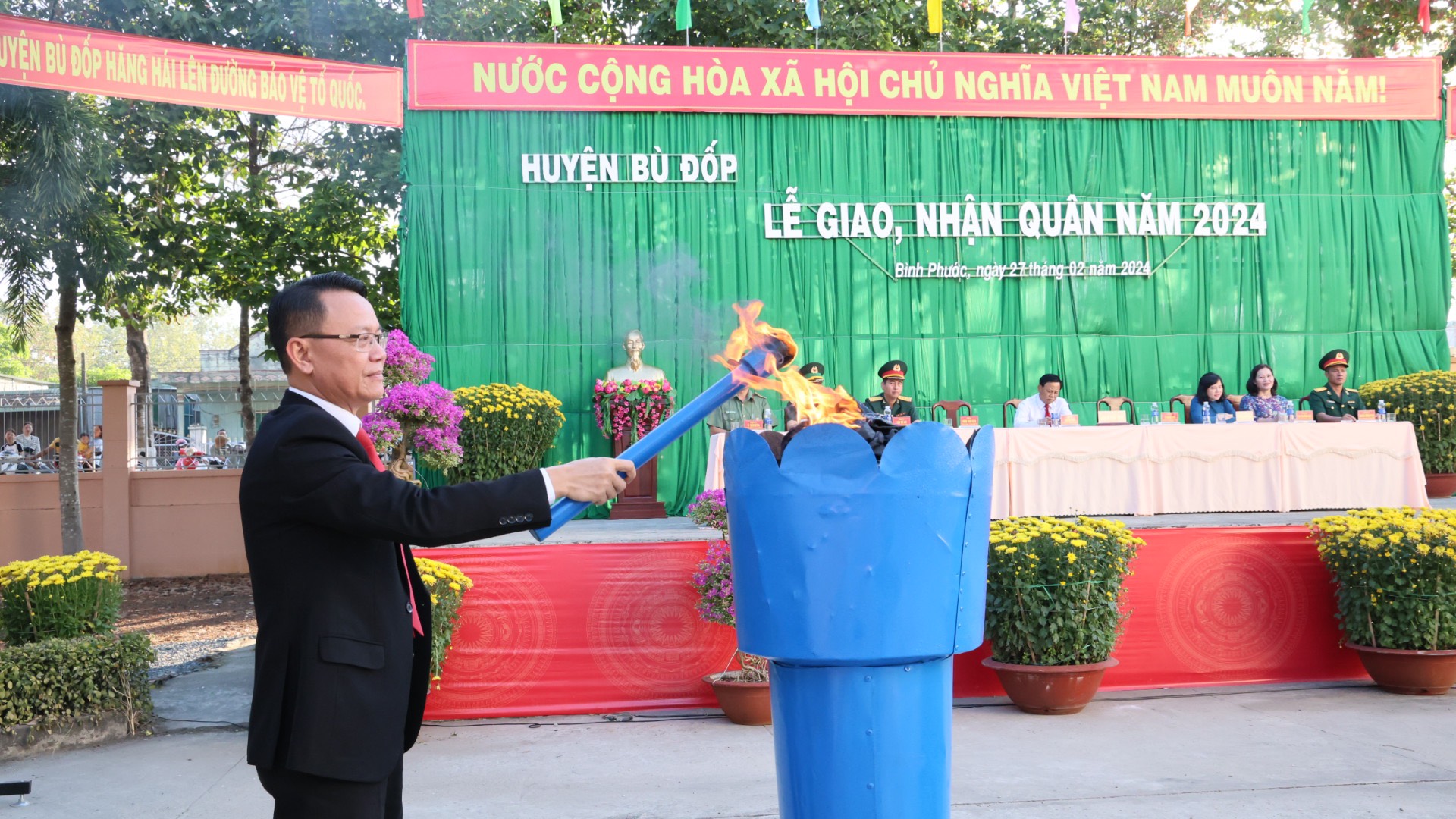 Năm 2024, huyện Bù Đốp được giao chỉ tiêu tuyển chọn 133 thanh niên nhập ngũ, trong đó có 105 thanh niên thực hiện NVQS, 28 thanh niên thực hiện nghĩa vụ trong lực lượng công an nhân dân. Công tác tuyển chọn được thực hiện chặt chẽ, đảm bảo quân số, trình độ, bảo đảm yêu cầu trong công tác tuyển chọn. Có 2 tân binh là đảng viên Đảng cộng sản Việt Nam. Trong tổng số 133 thanh niên có 61 thanh niên viết đơn tình nguyện, 8 thanh niên có trình độ cao đẳng, đại học và 27 thanh niên người dân tộc thiểu số. Đặc biệt, năm nay có 3 cặp anh em ruột cùng lên đường nhập ngũ.