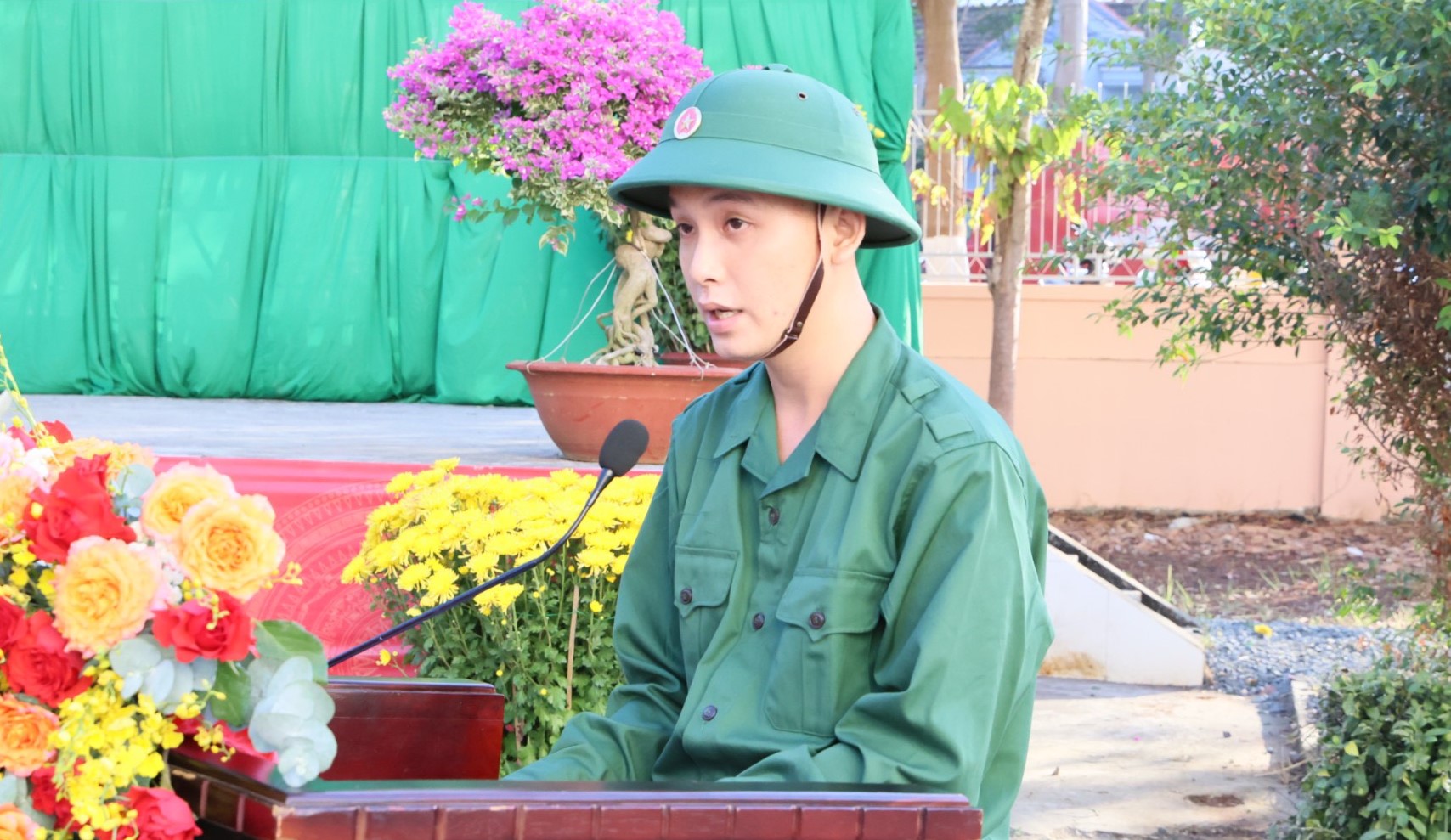 Phát biểu tại buổi lễ Chủ tịch UBND huyện Lê Quang Oanh đã nhắn gửi các tân binh trong thời gian quân ngũ sẽ được rèn luyện thử thách trong môi trường Quân đội, môi trường công an. Phát huy truyền thống quê hương không ngừng tu dưỡng, rèn luyện, khắc phục mọi khó khăn, thử thách, vươn lên trong học tập, huấn luyện giỏi, xứng đáng với truyền thống “ Anh bộ đội Cụ Hồ”, hoàn thành xuất sắc nhiệm vụ được giao, góp phần xây dựng quân đội chính quy, tinh nhuệ, hiện đại, bảo vệ vững chắc chủ quyền biên giới quốc gia.