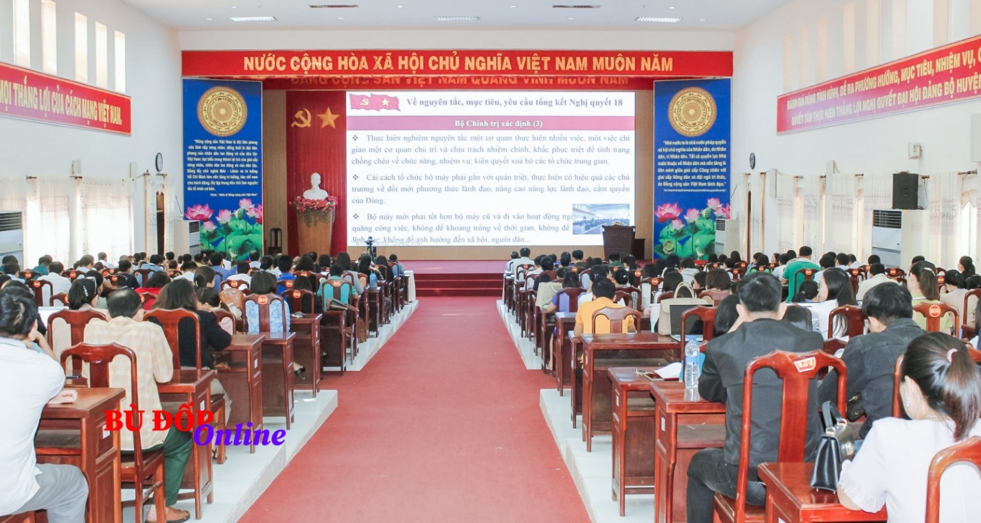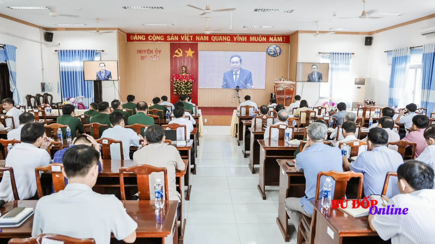 Tại điểm cầu Huyện ủy Bù Đốp có Phó bí thư Thường trực Huyện ủy Nguyễn Thị Hoài Thanh; Phó bí thư, Chủ tịch UBND huyện Lê Quang Oanh; các đồng chí Phó chủ tịch UBND huyện Nguyễn Minh Phong và đồng chí Văn Công Danh; các đồng chí là UV BTV, BCH Đảng bộ huyện; bí thư, phó bí thư các chi, đảng bộ trực thuộc Đảng bộ huyện; báo cáo viên cấp huyện, trưởng, phó các phòng ban chuyên môn cấp huyện; lãnh đạo Đảng ủy Trung đoàn 717 cùng dự.