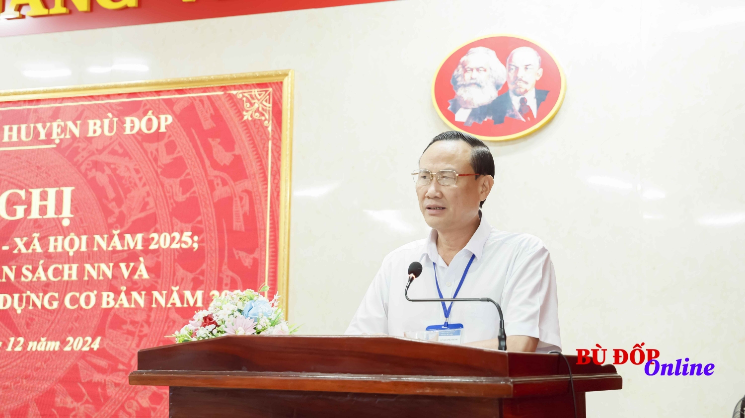 Chiều ngày 27-12, UBND huyện Bù Đốp tổ chức hội nghi giao chỉ tiêu dự toán ngân sách nhà nước năm 2025. Chủ tịch UBND huyện Lê Quang Oanh; Phó chủ tịch UBND huyện Văn Công Danh chủ trì hội nghị. Dự hội nghị có đại diện lãnh đạo các cơ quan đơn vị cấp huyện; các xã, thị trấn; kế toán ngân sách các đơn vị.
