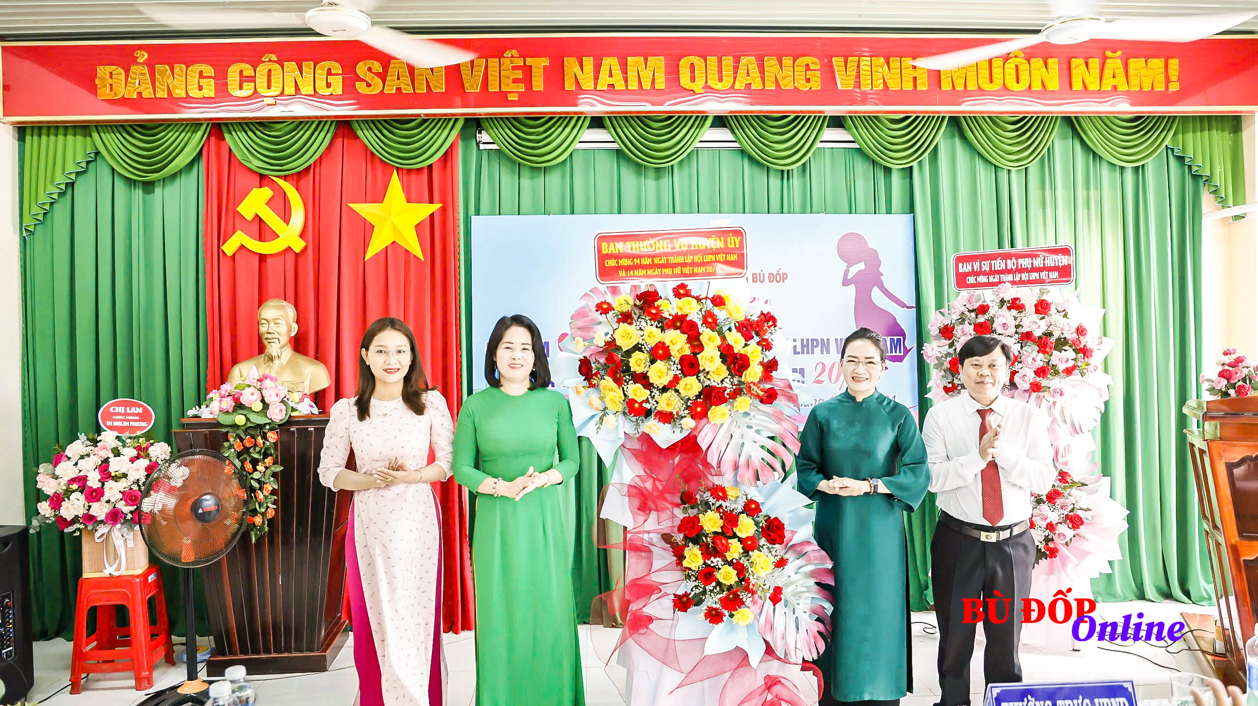 Sáng ngày 15-10, Hội liên hiệp phụ nữ huyện Bù Đốp (HLHPN) tổ chức họp mặt nhân kỷ niệm 94 năm Ngày thành lập HLHPN Việt Nam (20/10/1930 - 20/10/2022) và 14 năm Phụ nữ (PN) Việt Nam 20/10/2010 – 20/10/2024. Dự buổi họp mặt có Phó bí thư Thường trực Huyện ủy Nguyễn Thị Hoài Thanh; UVBTV, Chủ tịch UBMTTQ Việt Nam huyện Phạm Văn Tình; Phó chủ tịch UBND, Trưởng ban vì sự tiến bộ phụ nữ huyện Văn Công Danh và đại diện lãnh đạo các cơ quan, ban ngành.