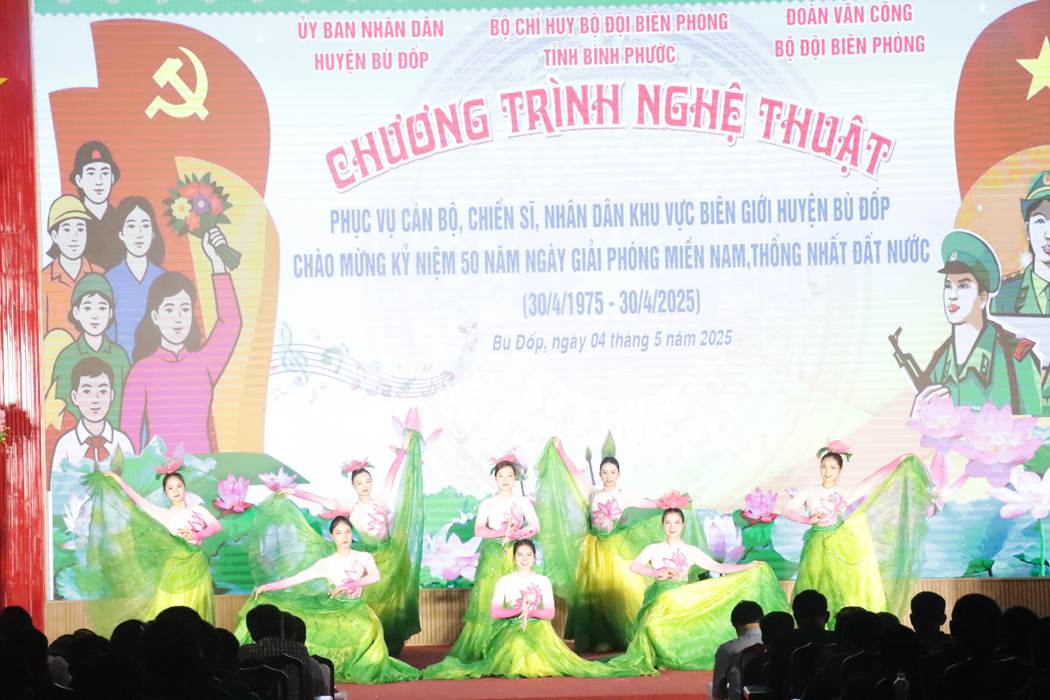 Tối ngày 04/05/2025, UBND huyện Bù Đốp phối hợp với Bộ Chỉ huy Bộ đội Biên phòng tỉnh Bình Phước và Đoàn Văn công Bộ đội Biên phòng tổ chức đêm diễn văn nghệ chào mừng 50 năm Ngày Giải phóng miền Nam, thống nhất đất nước (30/4/1975 – 30/4/2024). Tham dự chương trình Bí thư huyện uỷ Đặng Hà Giang, Phó chủ tịch UBND huyện Bù Đốp Văn Công Danh; Đại tá Phạm Văn Đảng chính uỷ Bộ Chỉ huy Bộ đội Biên phòng tỉnh Bình Phước, cùng đông đảo cán bộ, chiến sĩ lực lượng vũ trang và nhân dân trên địa bàn huyện.