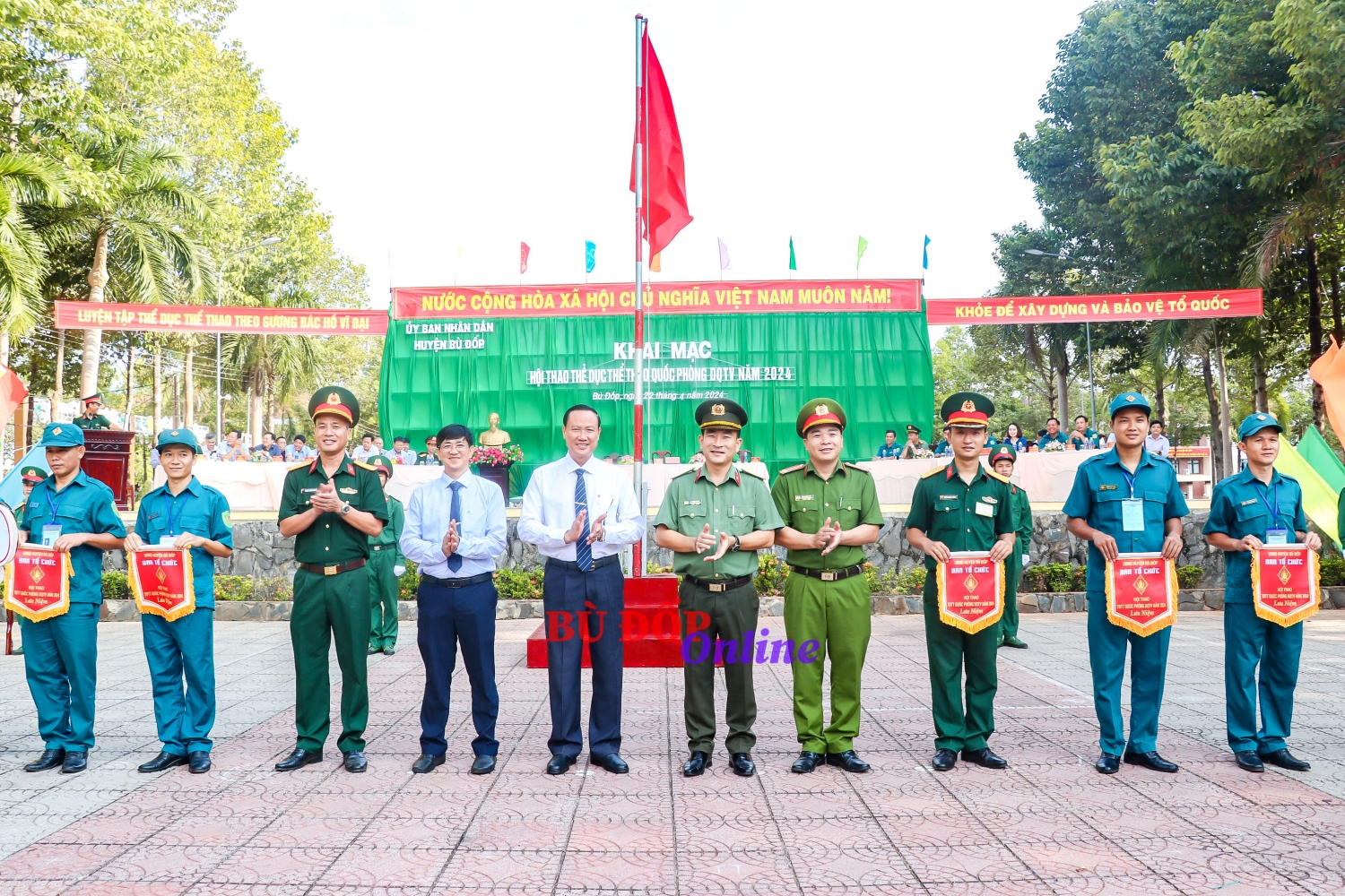 Sáng ngày 22/4, UBND huyện Bù Đốp tổ chức khai mạc Hội thao thể dục thể thao Quốc phòng Dân quân tự vệ năm 2024. Dự khai mạc có Chủ tịch UBND huyện Lê Quang Oanh; Phó chủ tịch UBND huyện Văn Công Danh. Cùng dự có đại diện lãnh đạo các cơ quan, ban ngành đoàn thể huyện, UBND các xã, thị trấn trên địa bàn huyện và trên 300 vận động viên đã tham dự.