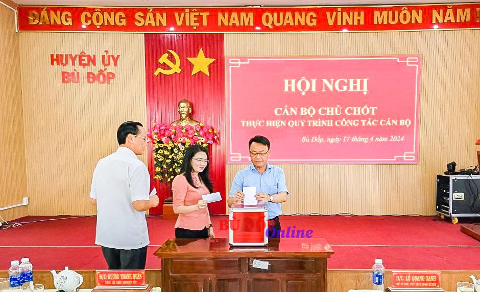Sáng ngày 17/4, Huyện ủy Bù Đốp tổ chức Hội nghị Ban Chấp hành Đảng bộ huyện, Ban Thường vụ Huyện ủy và Hội nghị cán bộ chủ chốt toàn huyện về công tác cán bộ để thực hiện quy trình kiện toàn Ủy viên Ban Chấp hành Đảng bộ huyện khóa XI, nhiệm kỳ 2020-2025. Đồng chí Dương Thanh Huân, Tỉnh uỷ viên, Bí thư Huyện uỷ, Chủ tịch HĐND huyện; đồng chí Nguyễn Thị Hoài Thanh, Phó bí thư Thường trực Huyện uỷ và đồng chí Lê Quang Oanh, Phó bí thư, Chủ tịch UBND huyện đồng chủ trì Hội nghị.