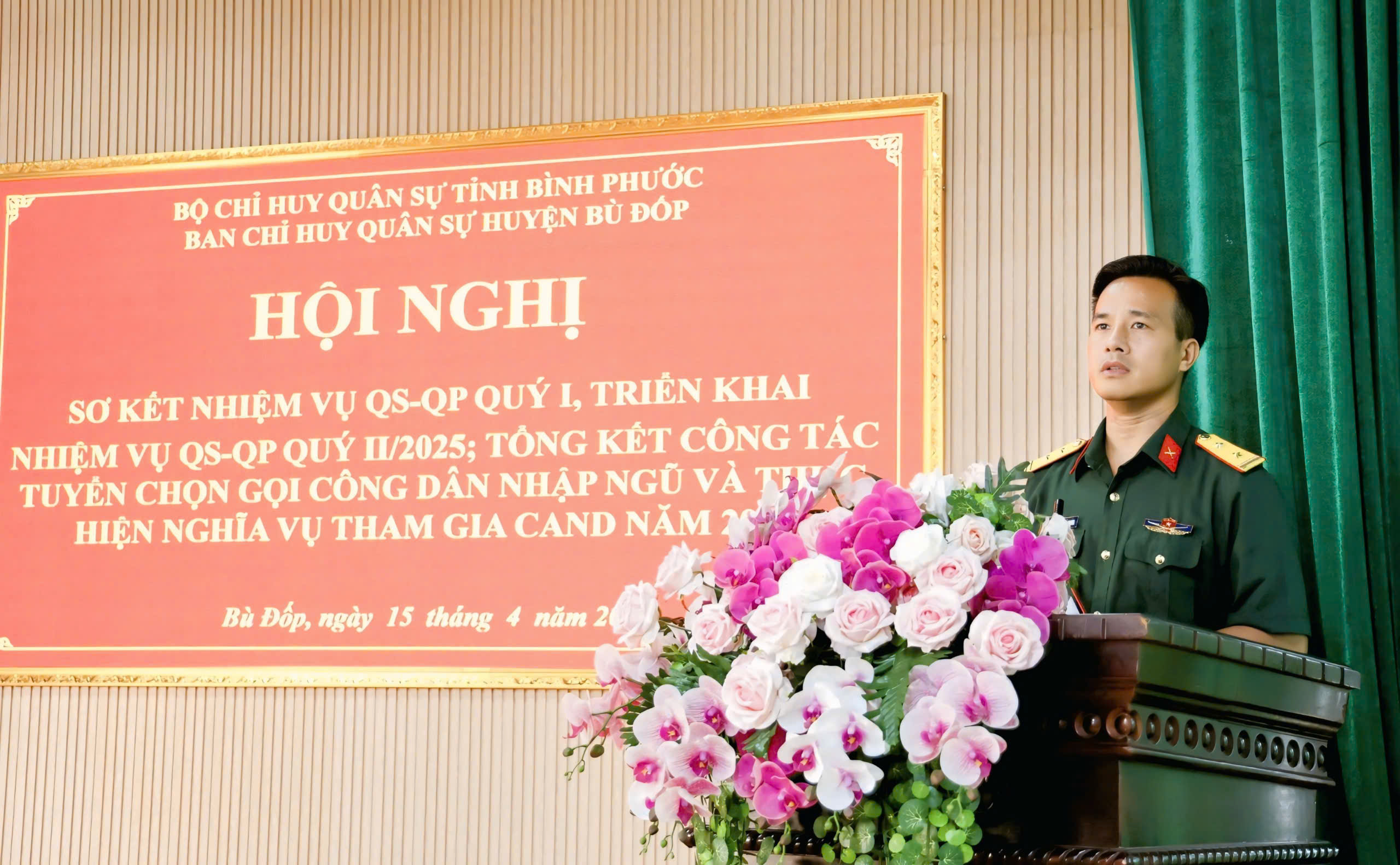 Trong năm 2025, huyện Bù Đốp có 2.679 công dân trong độ tuổi đăng ký sẵn sàng nhập ngũ. Trong đó trình độ trung cấp, cao đẳng, đại học 729 công dân, đạt trên 27,21% so với tổng nguồn. Căn cứ vào chỉ tiêu được giao, Hội đồng nghĩa vụ quân sự huyện đã tổ chức giao 138/138 công dân đạt 100% chỉ tiêu, có 3 đảng viên, đạt 100% chỉ tiêu. Trong đó 105 công dân tham gia nghĩa vụ quân sự, 33 công dân thực hiện nghĩa vụ công an.