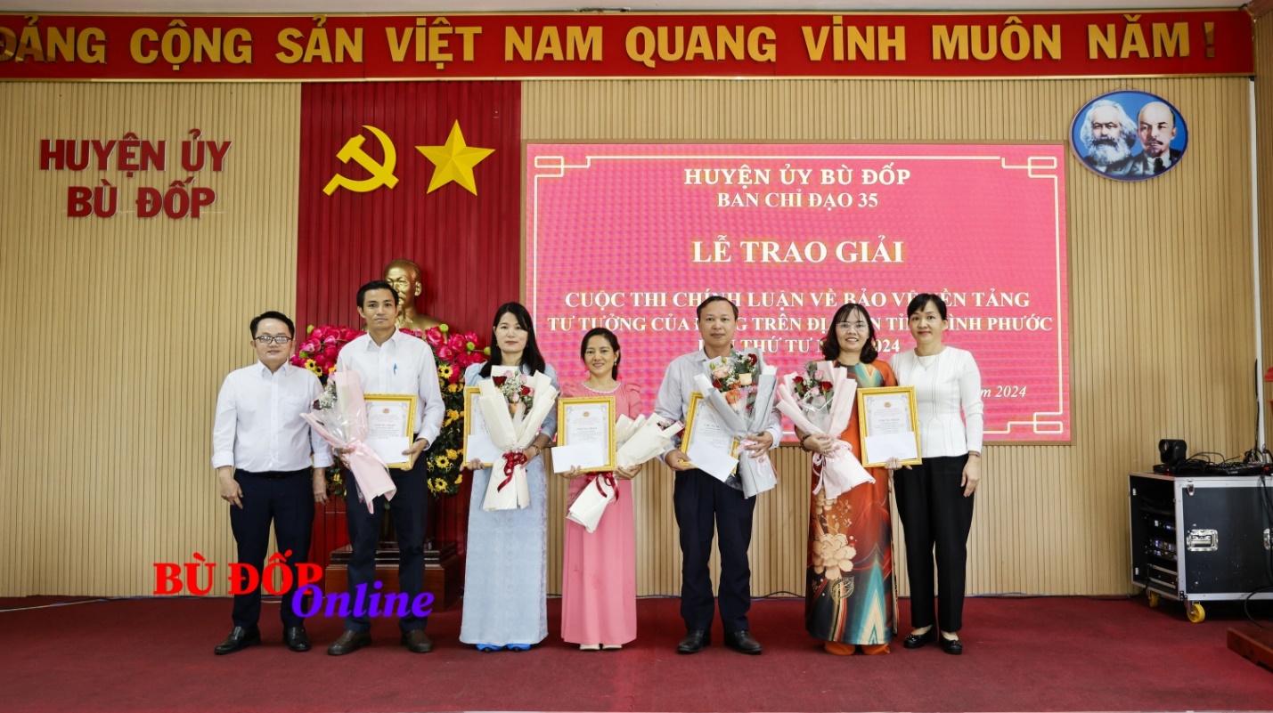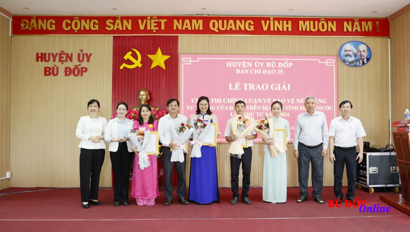Dịp này, BCĐ 35 huyện đã trao 17 giải cho 3 tập thể và 14 cá nhân đạt thành tích cao trong cuộc thi chính luận bảo vệ nền tảng tư tưởng của Đảng năm 2024; trao 08 giải cho các cá nhân xuất sắc cuộc thi trắc nghiệm “Tìm hiểu truyền thống Ngành Tuyên giáo của Đảng và công tác chuyển đổi số” trên App “Sổ tay đảng viên điện tử” năm 2024.