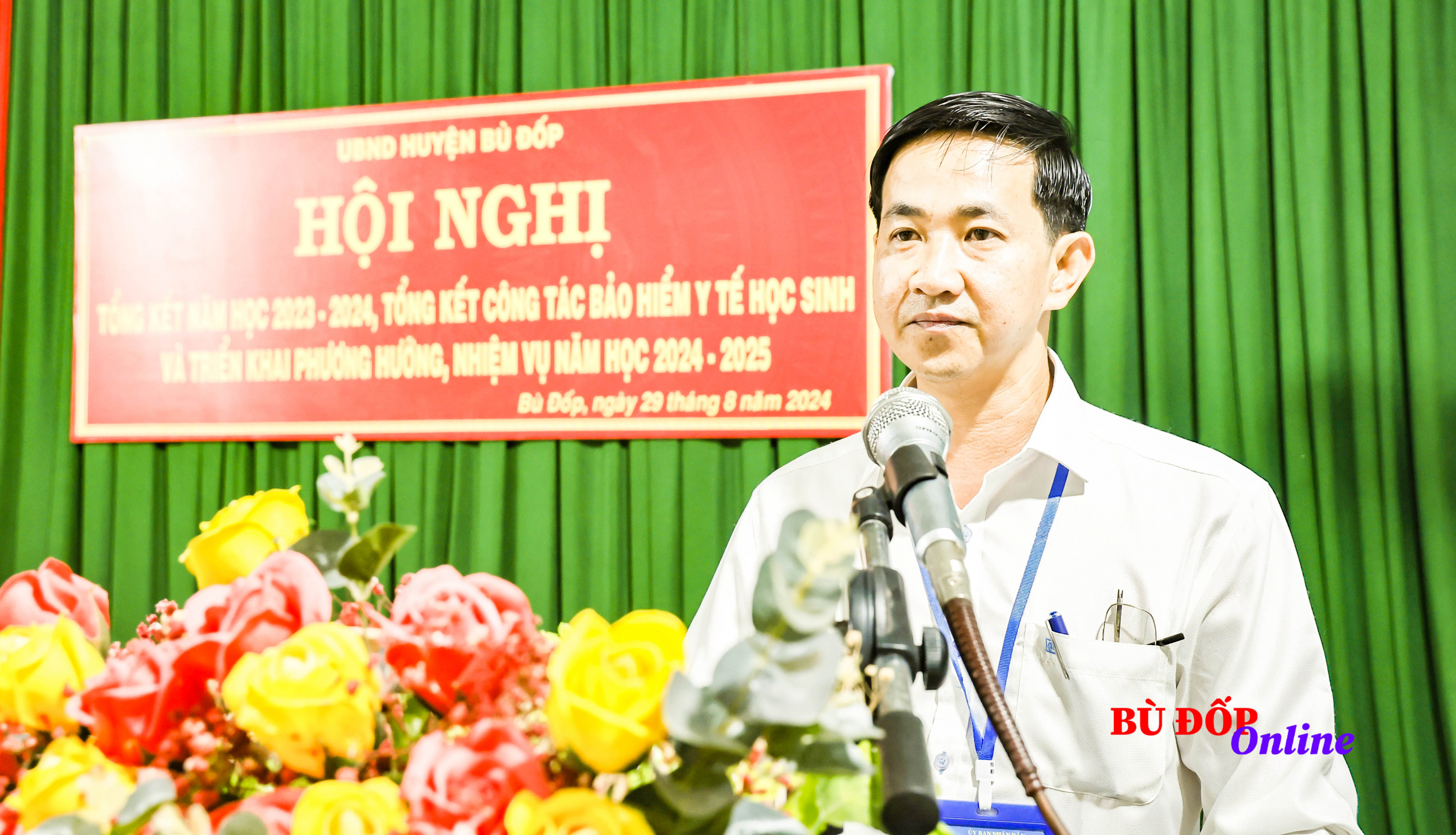 Phát biểu tại hội nghị, Phó chủ tịch UBND huyện Văn Công Danh ghi nhận, đánh giá cao kết quả của toàn ngành giáo dục trong năm học 2023-2024 và công tác BHYT trong học sinh. Đồng thời Phó chủ tịch UBND huyện cũng đề nghị ngành giáo dục huyện tiếp tục nâng cao chất lượng giáo dục, phấn đấu đạt và vượt các chỉ tiêu đã đề ra, đáp ứng tốt các yêu cầu của chương trình GDPT năm 2018. Thực hiện có hiệu quả việc học tập và làm theo tư tưởng, đạo đức, phong cách Hồ Chí Minh trong cán bộ, giáo viên và học sinh; tiếp tục giáo dục toàn diện cho học sinh, đảm bảo tạo ra môi trường học tập thân thiện, văn hóa, văn minh. Phối hợp với các ngành, địa phương tuyên truyền vận động hoc sinh tham gia BHYT.
