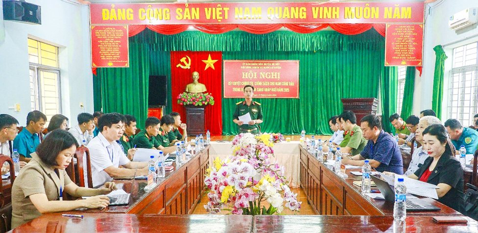 Phát biểu chỉ đạo tại cuộc họp, Trung tá Nguyễn Trường Giang, UVBTV Huyện uỷ, Chỉ huy trưởng Ban CHQS huyện, Phó chủ tịch Hội đồng Nghĩa vụ quân sự huyện nhấn mạnh: công tác tuyển chọn và gọi công dân nhập ngũ là nhiệm vụ rất quan trọng của địa phương, hàng năm cần phải thực hiện đạt kết quả tốt. Do đó, Phó chủ tịch HĐNVQS huyện đề nghị các thành viên HĐNVQS huyện và các xã, thị trấn căn cứ theo chức năng, nhiệm vụ để thực hiện đúng yêu cầu và theo dõi, đôn đốc thực hiện đạt yêu cầu đề ra. Tiêu chuẩn xét duyệt cần đảm bảo về lý lịch chính trị, phẩm chất đạo đức, trình độ văn hóa, hoàn cảnh kinh tế của thanh niên và gia đình. Đồng thời kiểm tra kỹ về sức khỏe của từng thanh niên. Tăng cường công tác tuyên truyền về Luật Nghĩa vụ quân sự và các văn bản Luật có liên quan. Tuyên truyền, vận động hội viên, nhân dân; các thanh niên trong độ tuổi nhập ngũ và gia đình có con em trong độ tuổi nhập ngũ nâng cao ý thức, trách nhiệm của công dân đối với nhiệm vụ xây dựng và bảo vệ Tổ quốc.