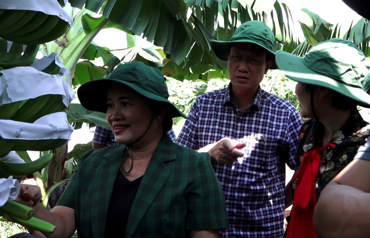 (Chủ tịch UBND tỉnh Trần Tuệ Hiền đến thăm vườn chuối cấy mô công nghệ cao tại huyện Bù Đốp)