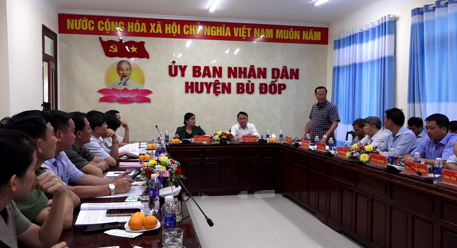 Sau khi đi thực tế, Đoàn công tác UBND tỉnh đã làm việc, nghe UBND huyện Bù Đốp, Công ty TNHH MTV cao su Bình Phước báo cáo kết quả, định hướng trong phát triển nông nghiệp ứng dụng công nghệ cao