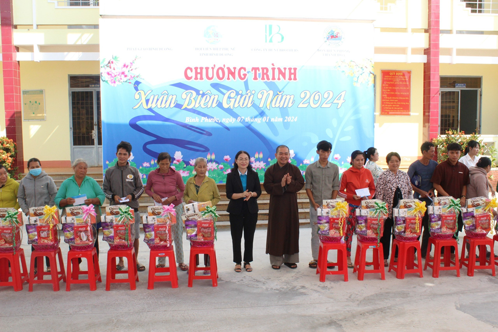 Được biết chương trình do hội Phụ nữ tỉnh Bình Dương vận động các đơn vị tài trợ và các mạnh thường quân ủng hộ 110 triệu đồng góp phần đem tết sớm đến người dân vùng biên Bù Đốp.
