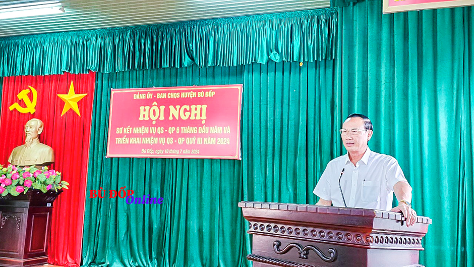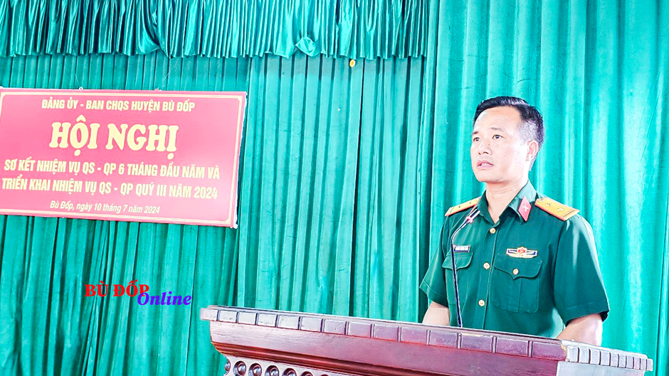 Chiều ngày 10/-7, Ban CHQS huyện Bù Đốp tổ chức Hội nghị sơ kết công tác quân sự, Quốc phòng 6 tháng đầu năm 2024, triển khai nhiệm vụ 6 tháng cuối năm 2024.
