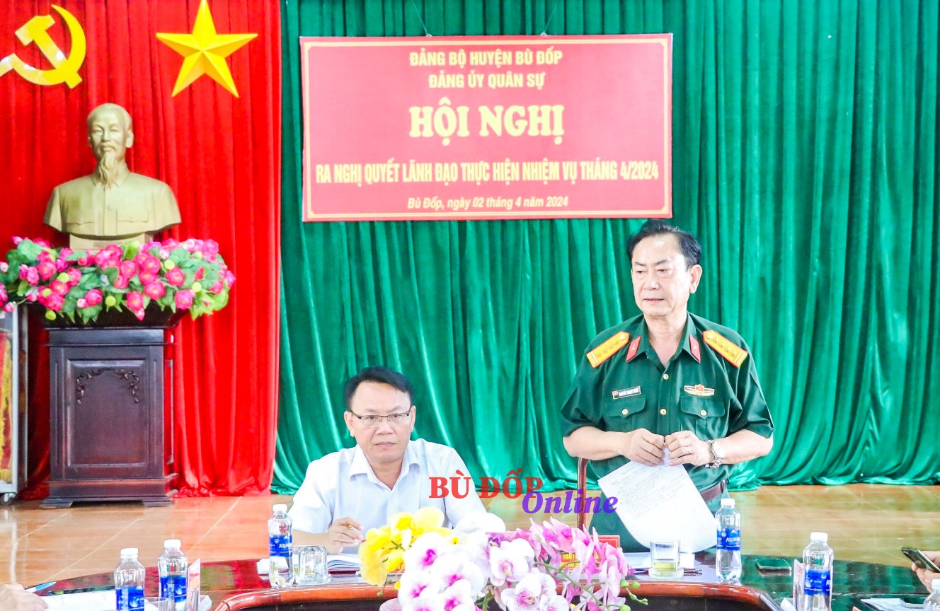 Đại tá Nguyễn Thành Ruân Phó chính ủy Bộ chỉ huy quân sự tỉnh Bình Phước phát biểu chỉ đạo tại hội nghị