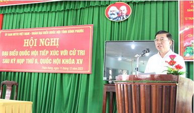 Chiều 11-12, Đại biểu Quốc hội tỉnh Bình Phước Nguyễn Tuấn Anh, Phó Trưởng ban Thường trực Ban Công tác đại biểu thuộc Ủy ban Thường vụ Quốc hội đã tiếp xúc với cử tri các xã Hưng Phước, Thiện Hưng, Phước Thiện và thị trấn Thanh Bình, huyện Bù Đốp sau Kỳ họp thứ 6, Quốc hội khóa XV.