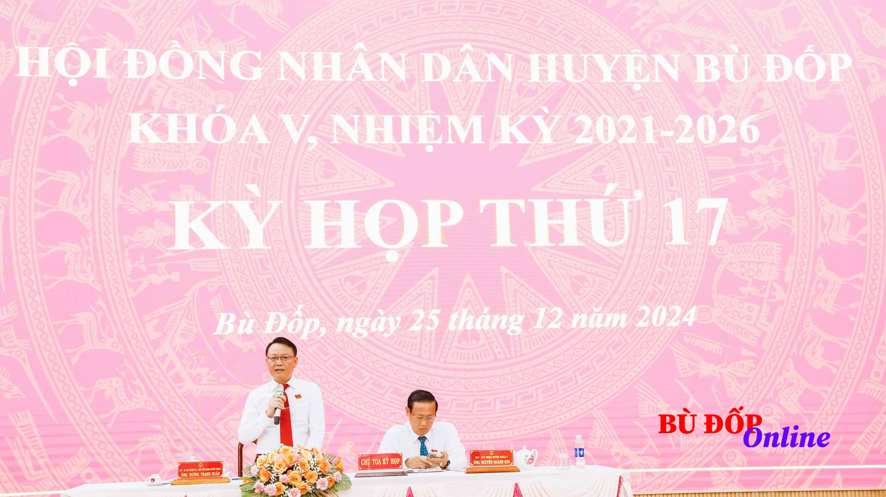 Ngày 25-12, Hội đồng nhân dân huyện Bù Đốp khóa V, nhiệm kỳ 2021 - 2026 long trọng tổ chức kỳ họp thứ 17, nhằm đánh giá tình hình thực hiện nhiệm vụ năm 2024, phương hướng nhiệm vụ năm 2025. Tỉnh ủy viên, Bí thư Huyện ủy, Chủ tịch HĐND huyện Dương Thanh Huân; Phó chủ tịch Thường trực HĐND huyện Nguyễn Hoành Sơn đều hành kỳ họp.
