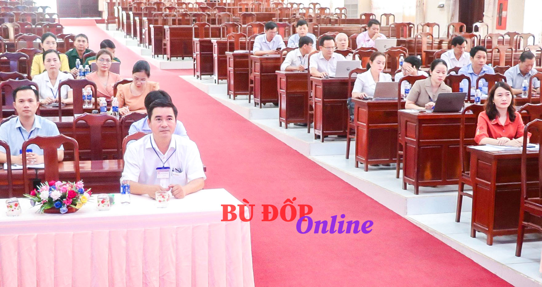 Tại điểm cầu huyện Bù Đốp, đồng chí Văn Thị Ngọc Điệp, Phó ban Thường trực Ban tuyên giáo Huyện uỷ chủ trì Hội nghị.