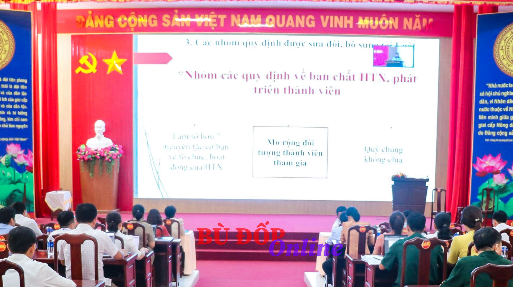 Các đại biểu tham dự Hội nghị đã được nghe các báo cáo viên thông tin về nội dung: Luật Hợp tác xã năm 2023 và các chương trình, nghị quyết, chính sách của trung ương, của tỉnh về phát triển kinh tế tập thể, hợp tác xã; Nghị quyết số 11-NQ/TU, ngày 10-7-2023 của Tỉnh ủy về cơ cấu lại ngành nông nghiệp tỉnh giai đoạn 2021-2025, định hướng đến năm 2030. Ngoài ra, các báo viên cũng thông tin những kết quả nổi bật về bảo hiểm xã hội, bảo hiểm y tế, bảo hiểm thất nghiệp của tỉnh từ năm 2023 đến nay; Chương trình hành động số 55 CTr/TU, ngày 13-3-2024 của Tỉnh ủy thực hiện Nghị quyết số 41-NQ/TW, ngày 10-10-2023 của Bộ Chính trị về xây dựng và phát huy vai trò của đội ngũ doanh nhân Việt Nam trong thời kỳ mới trên địa bàn tỉnh Bình Phước.