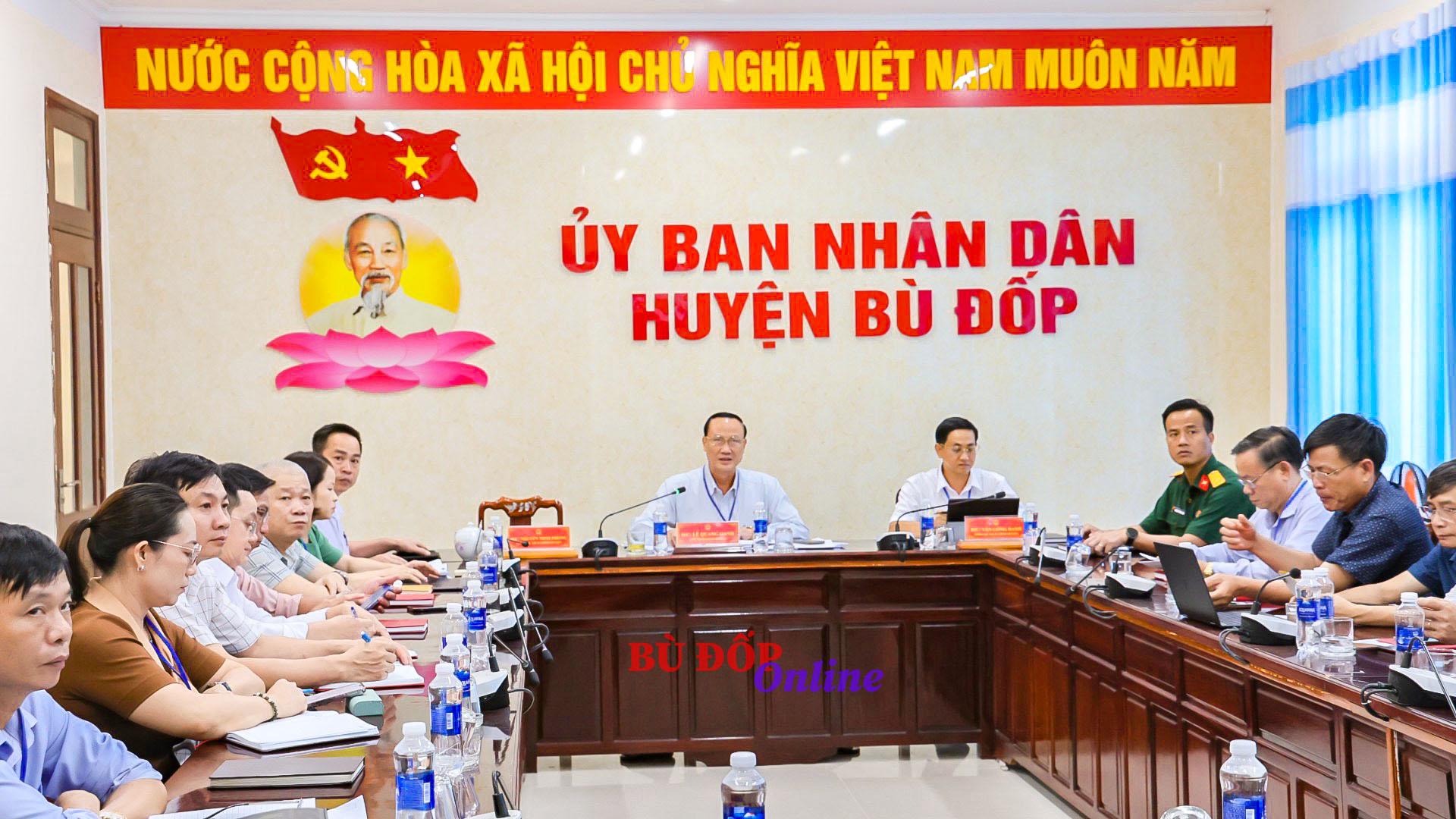 Tại điểm cầu Bù Đốp, Chủ tịch UBND huyện Lê Quang Oanh chủ trì hội nghị; Phó chủ tịch UBND huyện Văn Công Danh và lãnh đạo các phòng ban, Công an, Ban chỉ huy quân sự, Chủ tịch UBND các xã, thị trấn cùng dự.