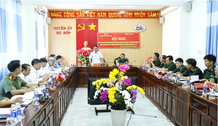 Sáng ngày 8-1, tại Huyện ủy Bù Đốp, Đảng ủy Bộ đội biên phòng tỉnh Bình Phước tổ chức hội nghị sơ kết quy chế phối hợp giữa Đảng ủy bộ đội biên phòng tỉnh với Huyện ủy Bù Đốp trong lãnh đạo công tác biên phòng và xây dựng lực lượng BĐBP tỉnh giai đoạn 2021-2025. Đồng chí Hoàng Văn Thành, Bí thư Đảng ủy BĐBP tỉnh; đồng chí Dương Thanh Huân, Tỉnh ủy viên, Bí thư Huyện ủy, Chủ tịch HĐND huyện Bù Đốp chủ trì hội nghị. Dự hội nghị có đồng chí Phó bí thư Thường trực Huyện ủy Nguyễn Thị Hoài Thanh; Phó bí thư, Chủ tịch UBND huyện Lê Quang Oanh; các đồng chí là UVBTV huyện ủy và các đồng chí Bí thư đảng ủy các xã biên giới của huyện cùng dự.