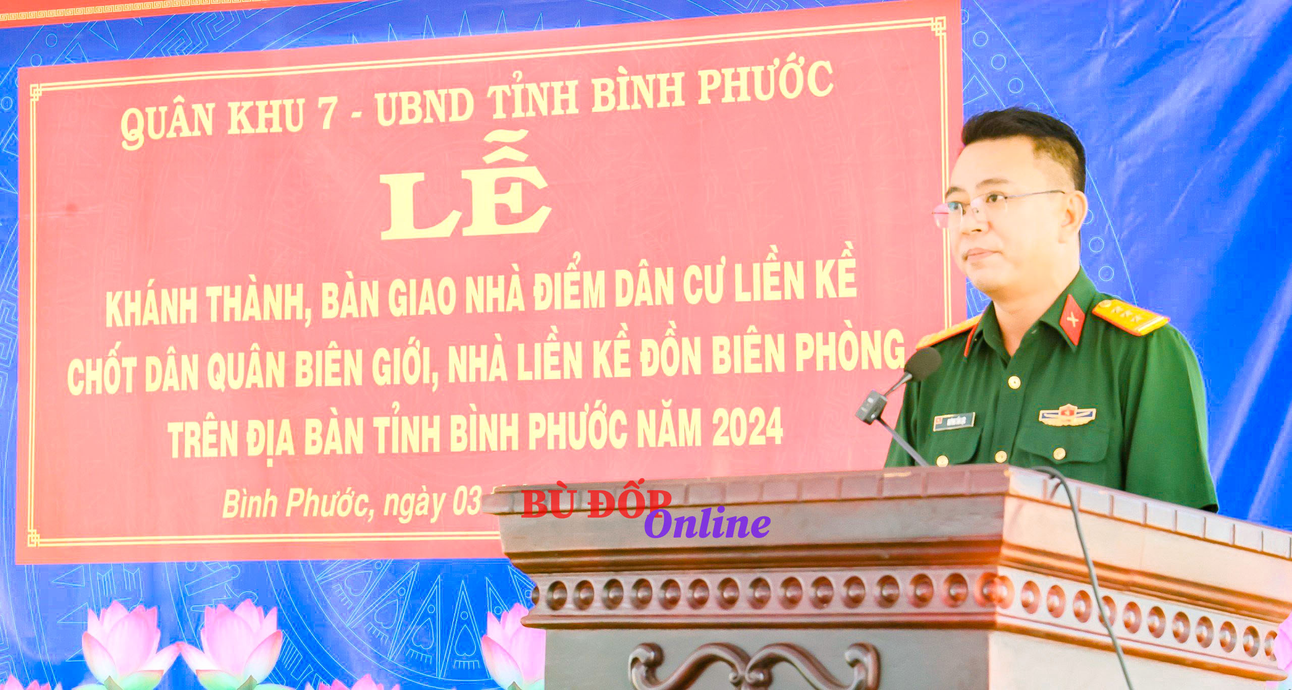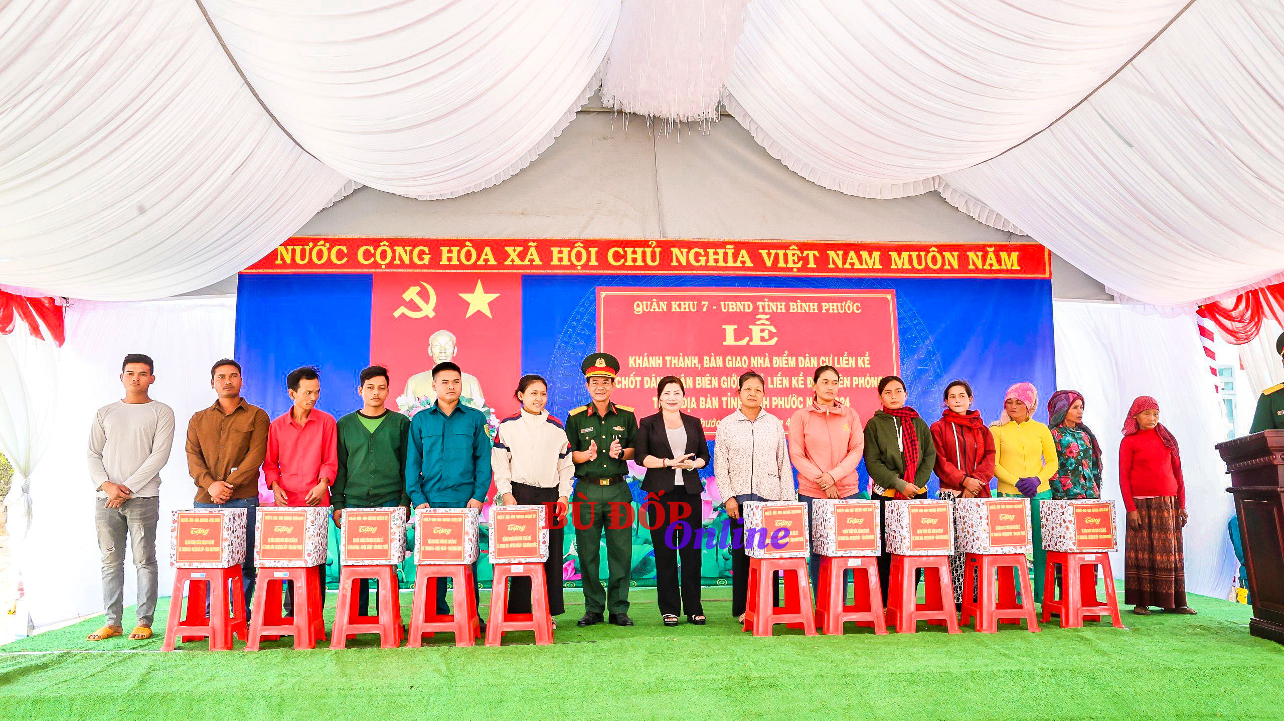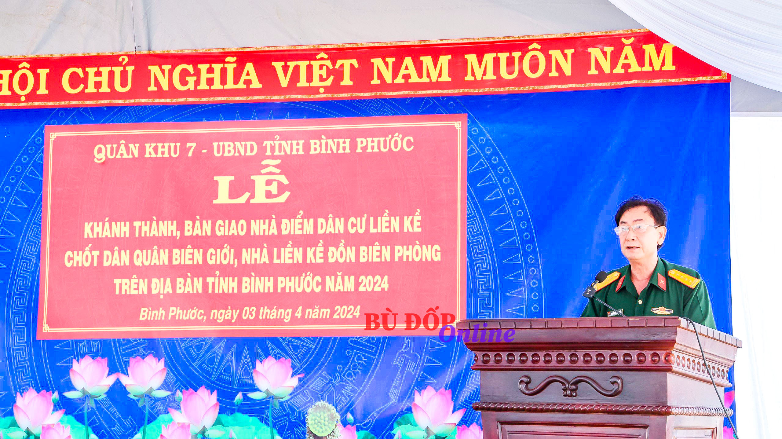 Sáng ngày 3/4, Quân khu 7 và UBND tỉnh Bình Phước phối hợp chính quyền địa phương tổ chức khánh thành, bàn giao 79 căn nhà điểm dân cư liền kề chốt dân quân biên giới, nhà liền kề các Đồn biên phòng trên địa bàn tỉnh năm 2024. Dự buổi lễ có đại diện lạnh đạo quân khu 7; Đại tá, Nguyễn Thành Ruân Phó Chính ủy Bộ Chỉ huy Quân sự tỉnh; đại diện lãnh đạo UBMTTQ Việt Nam tỉnh, Ban dân tộc tỉnh.
