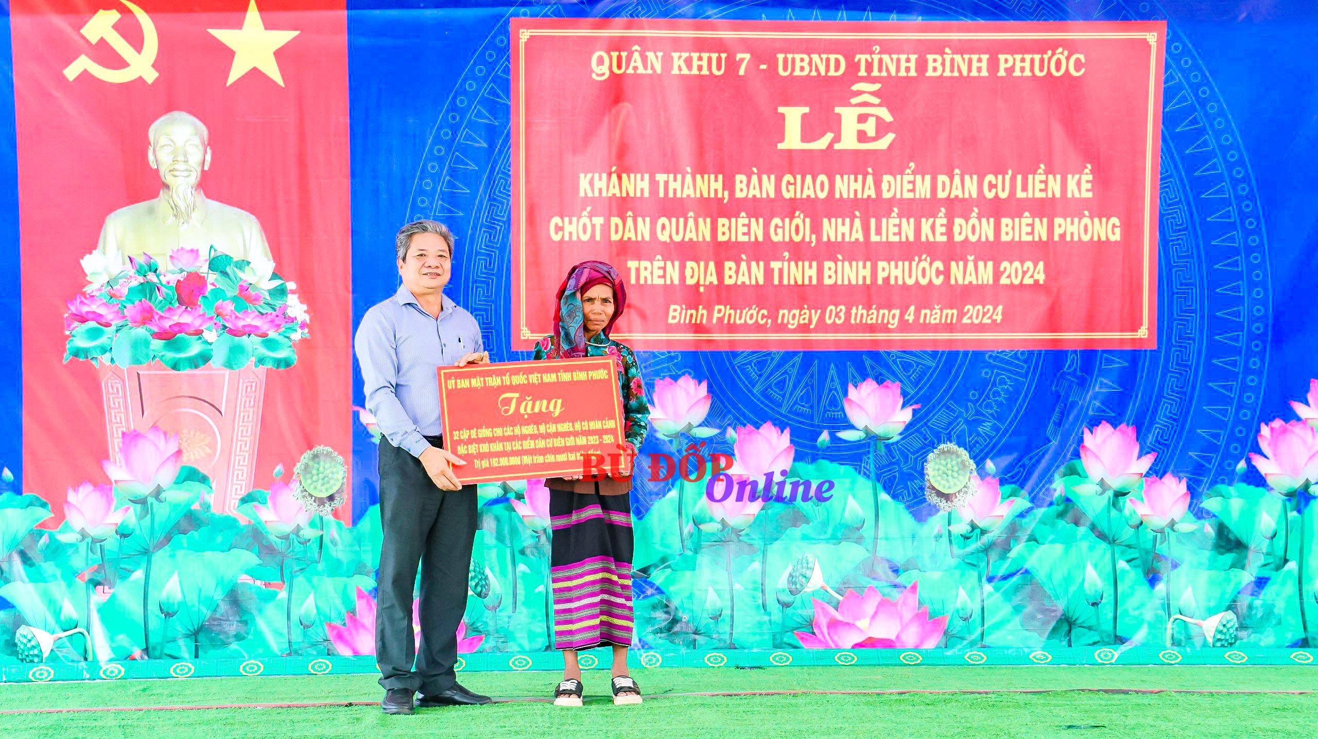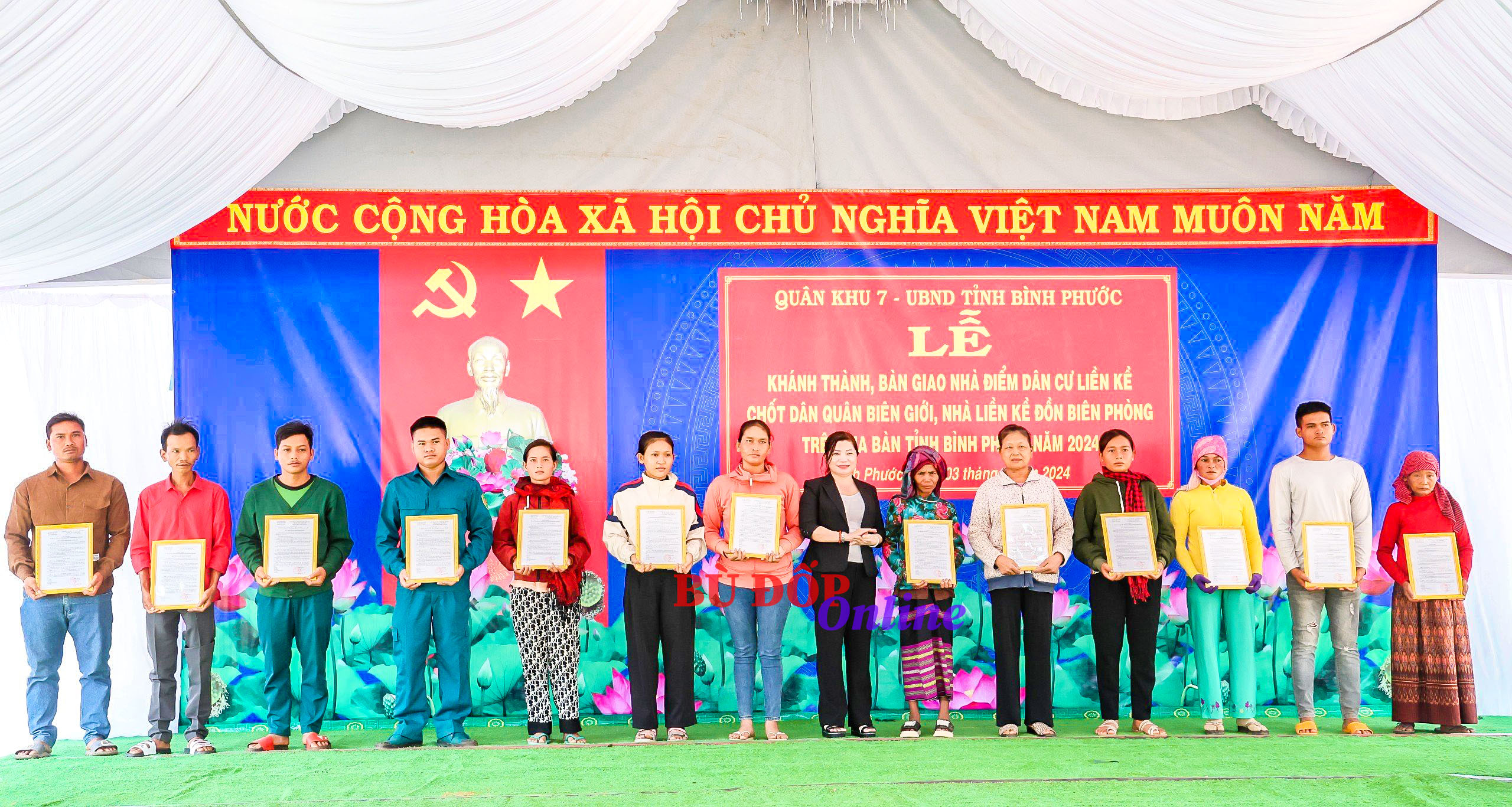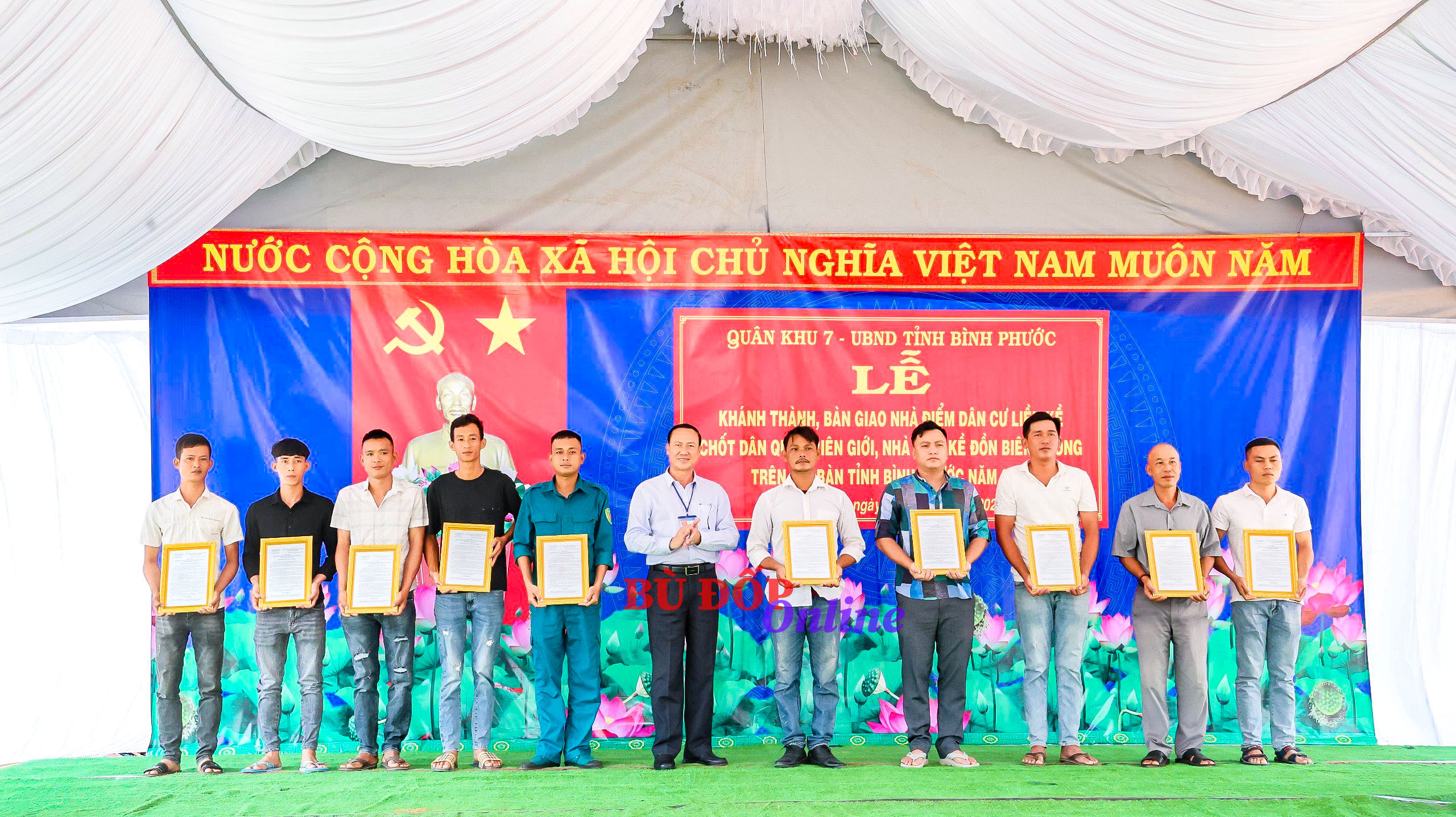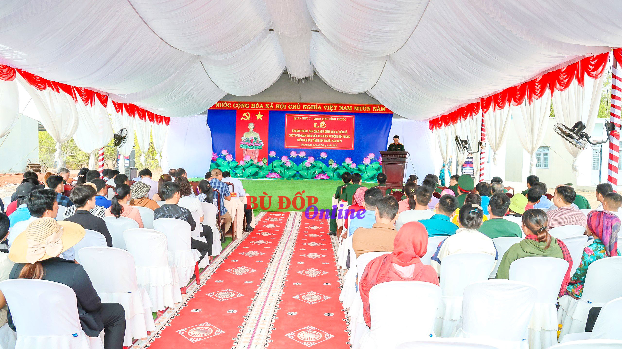 Sáng ngày 3/4, Quân khu 7 và UBND tỉnh Bình Phước phối hợp chính quyền địa phương tổ chức khánh thành, bàn giao 79 căn nhà điểm dân cư liền kề chốt dân quân biên giới, nhà liền kề các Đồn biên phòng trên địa bàn tỉnh năm 2024. Dự buổi lễ có đại diện lạnh đạo quân khu 7; Đại tá, Nguyễn Thành Ruân Phó Chính ủy Bộ Chỉ huy Quân sự tỉnh; đại diện lãnh đạo UBMTTQ Việt Nam tỉnh, Ban dân tộc tỉnh.