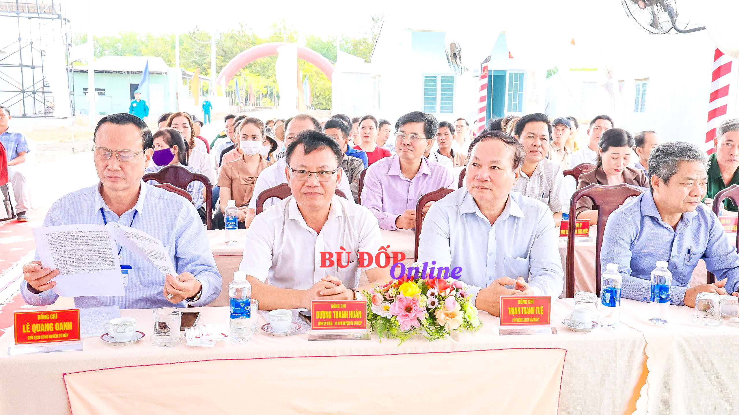 Về phía huyện Bù Đốp có Tỉnh ủy viên, Bí thư Huyện ủy, Chủ tịch HĐND huyện Dương Thanh Huân; Phó bí thư, Chủ tịch UBND huyện Lê Quang Oanh; UVBTV Trưởng ban dân vận, Chủ tịch UBMTTQ Việt Nam huyện Cao Thị Hồng Mận; Phó chủ tịch UBND huyện Văn Công Danh và 79 hộ dân thụ hưởng nhà liền kề cùng dự.