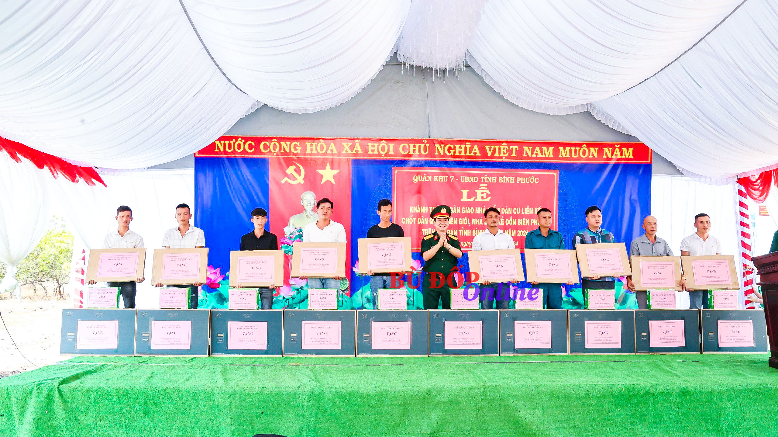 Dịp này, Quân khu 7 trao tặng 79 phần quà cho các hộ tại khu liền kề, mỗi hộ 01 ti vi, 01 ảnh Bác, 01 lá cờ tổ quốc với tộng trị giá trên 643 triệu đồng. UBMTTQ Việt Nam tỉnh tặng 32 cặp dê giống trị giá 192 triệu đồng cho các hộ gia định thuộc hộ nghèo. Huyện ủy, HĐND, UBND, UBMTTQ Việt Nam huyện Bù Đốp cũng đã trao những phần quà ý nghĩa đến các hộ dân thụ hường nhà liền kề.