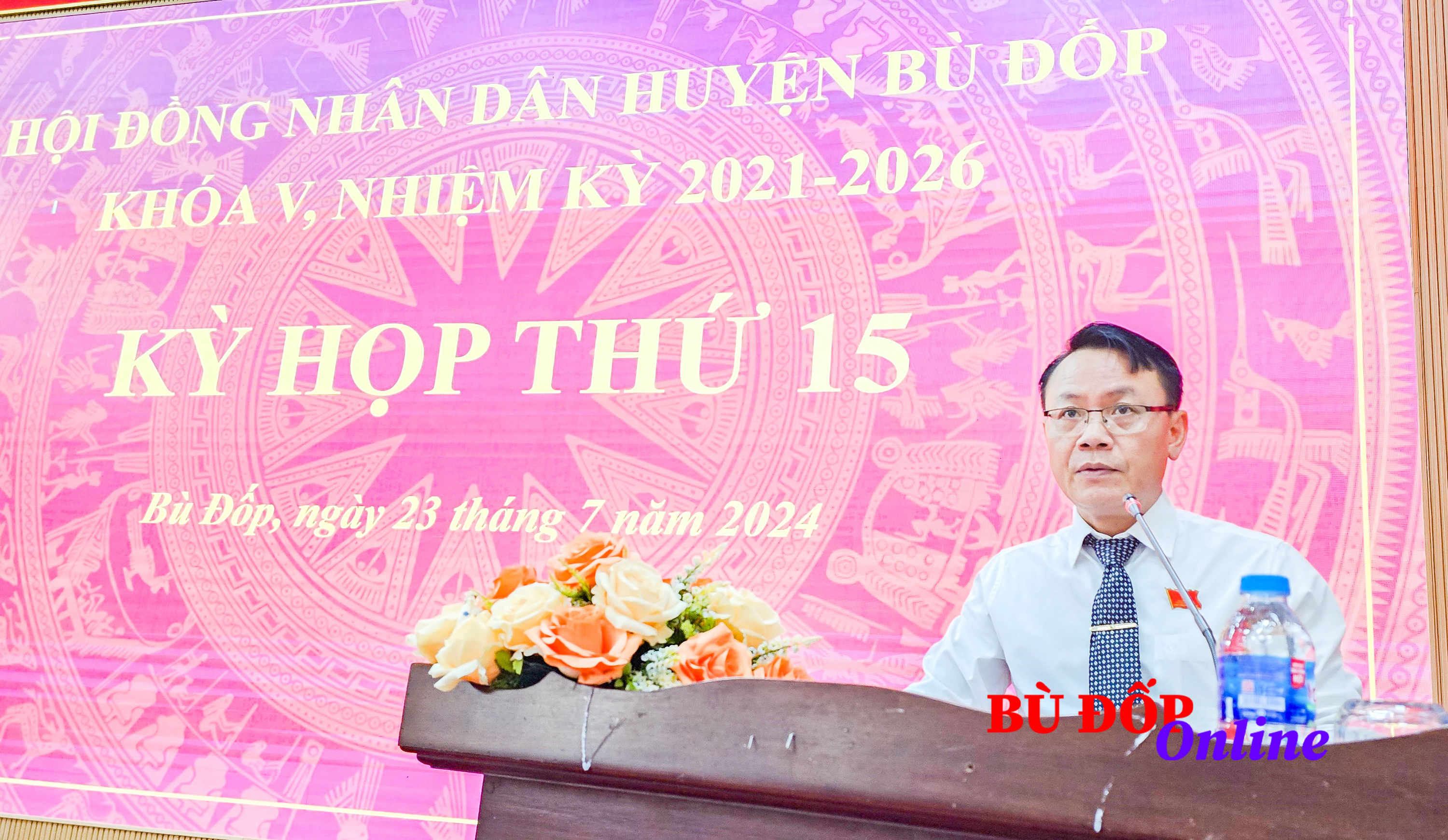Sáng ngày 23/7, HĐND huyện Bù Đốp tổ chức kỳ họp lần thứ 15 khóa V, nhiệm kỳ 2021-2026. Kỳ họp nhằm đánh giá kết quả thực hiện nhiệm vụ kinh tế - xã hội 6 tháng đầu năm, thống nhất đề ra nhiệm vụ trọng tâm 6 tháng cuối năm 2024. Dự kỳ họp có ông Huỳnh Hữu Thiết, Phó chủ tịch HĐND tỉnh; lãnh đạo Huyện ủy, HĐND, UBND, UBMTTQ Việt Nam huyện; lãnh đạo các đơn vị, phòng ban chuyên môn và 32 đại biểu HĐND huyện khóa V, nhiệm kỳ 2021-2026.