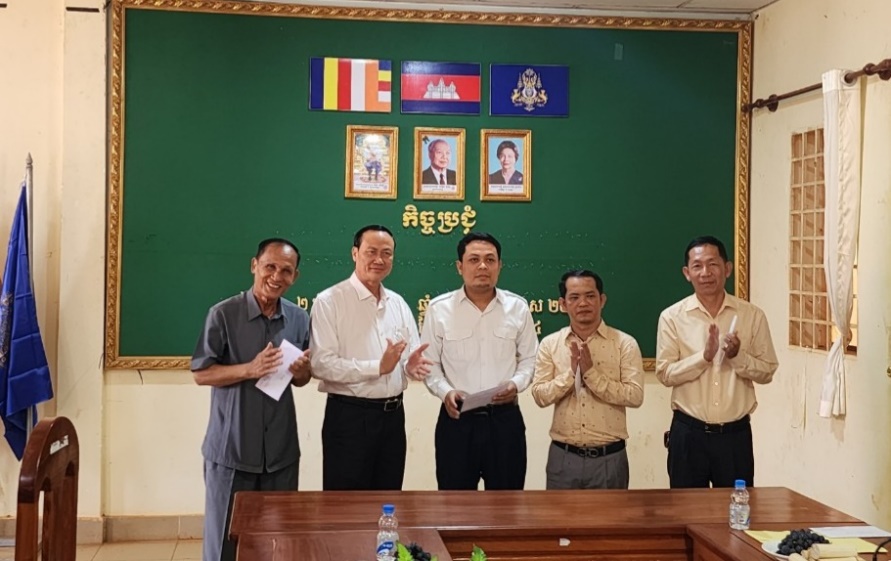 Ông Lê Quang Oanh chủ tịch trưởng đoàn thăm chúc tết lãnh đạo huyện Keosima/Munđulkiri Vương quốc Campuchia.