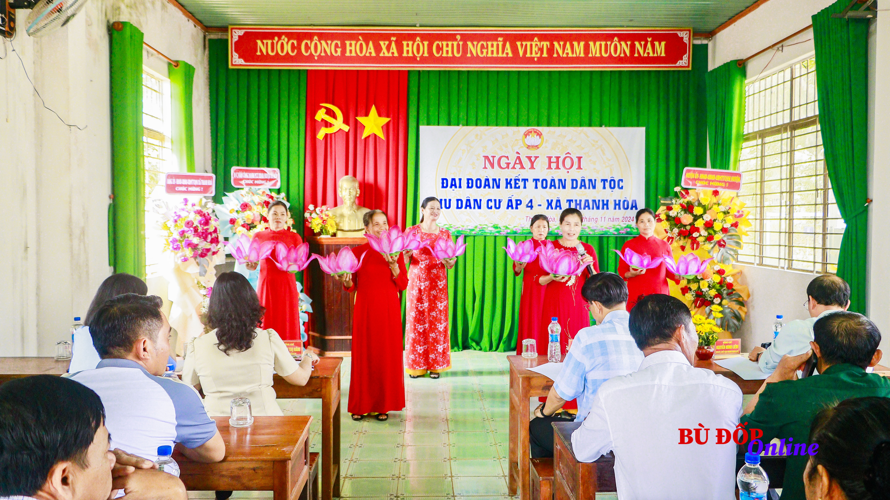 Phát biểu tại Buổi Lễ, Bí thư Đảng uỷ xã Thanh Hoà Nguyễn Thị Năm đã vui mừng gửi đến các đại biểu tham dự Ngày hội và cà con nhân dân trong khu dân cư ấp 4 những lời chúc tốt đẹp nhất, đồng thời ghi nhận, đánh giá cao những kết quả của tích cực trong phát triển kinh tế - xã hội mà cán bộ, nhân dân ấp 4 đạt được thời gian qua.