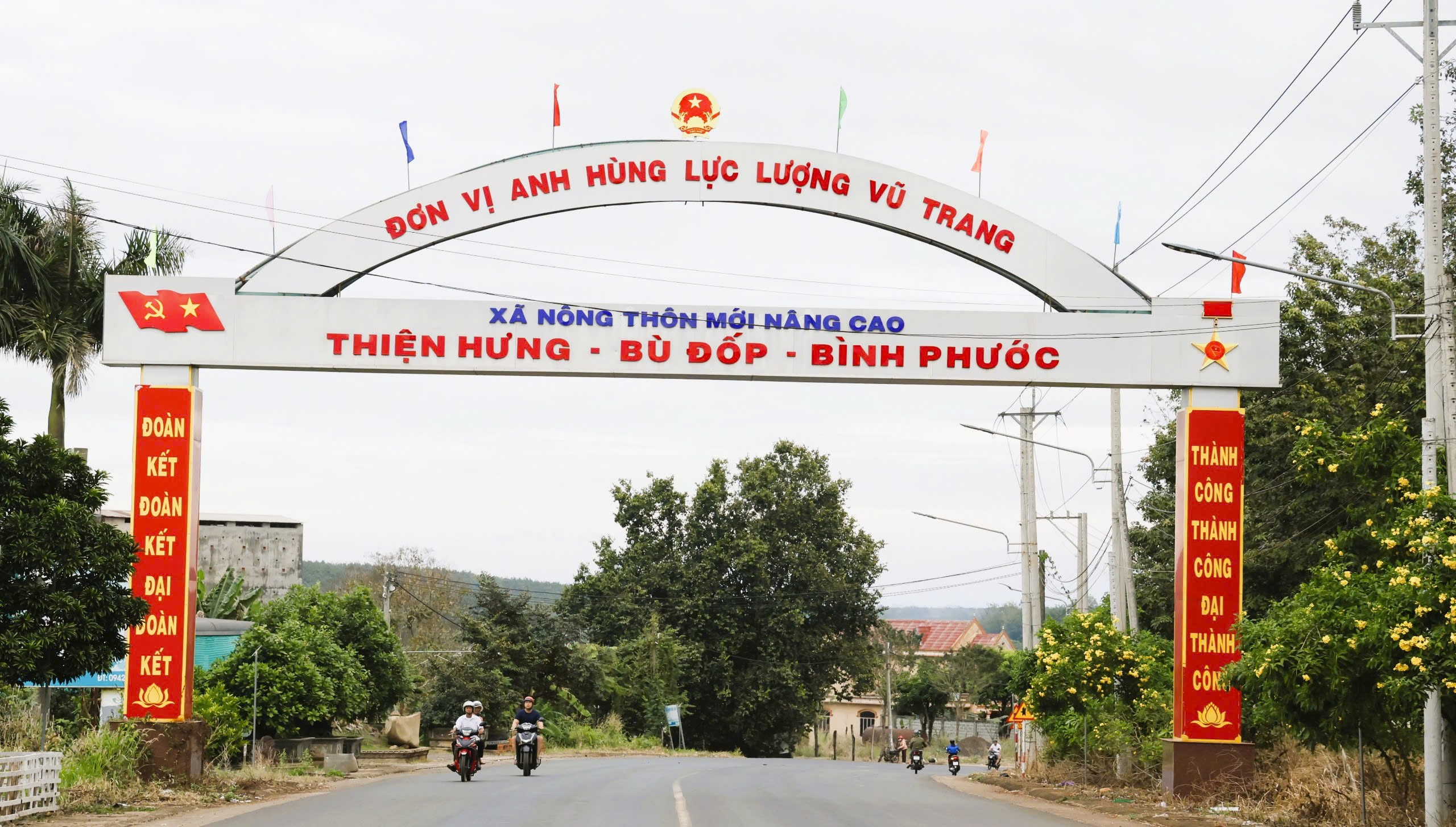 Thiện Hưng là xã đầu tiên của huyện Bù Đốp được công nhận nông thôn mới năm 2017, đến năm 2024 có 02 khu dân cư đạt khu dân cư kiểu mẫu. Với quan điểm “chậm mà chắc”, những năm qua, Đảng bộ, chính quyền và Nhân dân xã Thiện Hưng đang tiếp tục triển khai nhiều giải pháp hướng đến đích xây dựng NTM nâng cao. Trong 20 tiêu chí của NTM nâng cao, Thiện Hưng xác định xây dựng kết cấu hạ tầng cơ sở là yếu tố quan trọng thể hiện sự đổi thay của diện mạo cũng như chất lượng cuộc sống của người dân. Do đó từ các nguồn vốn chương trình mục tiêu xây dựng NTM xã tiến hành xây dựng, chỉnh trang đường giao thông nông thôn. Các hội đoàn thể đẩy mạnh công tác tuyên truyền người dân trồng hoa, cây xanh, thường xuyên quét dọn đảm bảo cảnh quan môi trường.