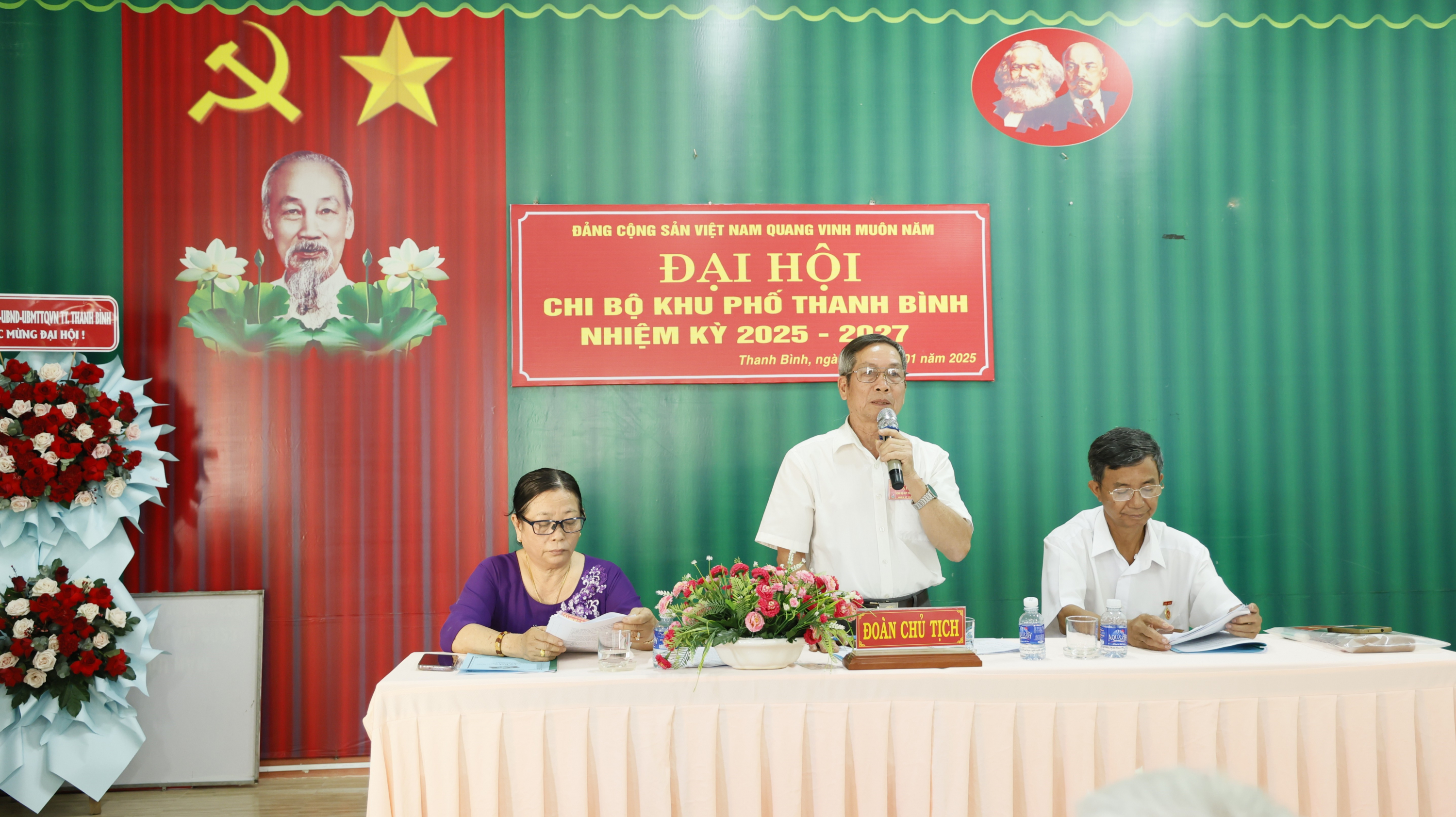 Sau một buổi Đại hội diễn ra trên tinh thần tập trung dân chủ, nghiêm túc, đúng quy định Đại hội đã bầu cấp ủy nhiệm kỳ 2025-2027, gồm 5 đồng chí. Đồng chí Nguyễn Xuân Chiều, Bí thư chi bộ tiếp tục được tín nhiệm bầu giữ chức danh Bí thư chi bộ khu phố Thanh Bình, nhiệm kỳ 2025-2027, với số phiếu bầu 100%; đồng chí Bùi Văn Thiện, Trưởng khu phố được bầu giữ chức Phó bí thư chi bộ.