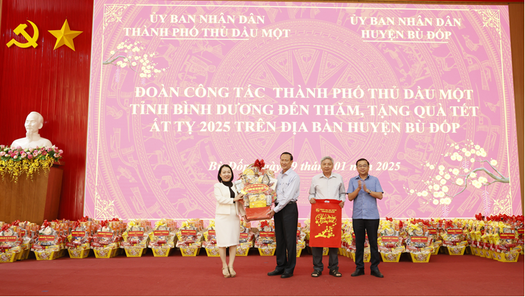 Dịp này TP Thủ Dầu Một đã gửi lời chúc mừng năm mới 2025 an khang thịnh vượng và phần quà ý nghĩa đến lãnh đạo Huyện Bù Đốp; các phường kết nghĩa của TP Thủ Dầu Một cũng đã trao tặng quà Tết và chúc mừng năm mới đến lãnh đạo Đảng ủy – UBND các xã, thị trấn của huyện Bù Đốp.