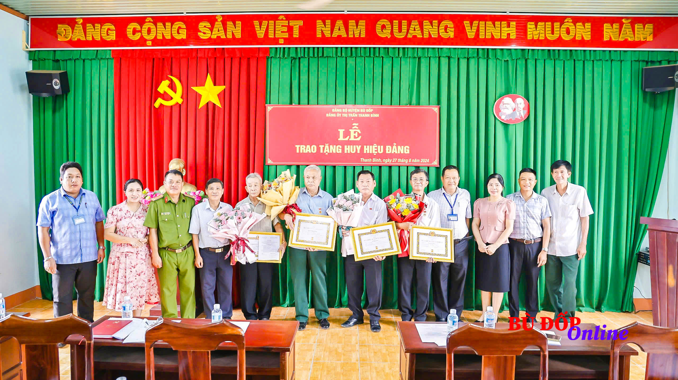 Sáng ngày 27/8, Đảng ủy thị trấ Thanh Bình tổ chức lễ trao Huy hiệu Đảng đợt 2-9 cho 5 đảng viên. Dự buổi lễ có Phó Bí thư, Chủ tịch UBND huyện Bù Đốp Lê Quang Oanh; đại diện lãnh đạo Ban tổ chức Huyện ủy; các đồng chí trong Ban thường vụ Đảng ủy thị trấn Thanh Bình và các đảng viên cao tuổi Đảng.