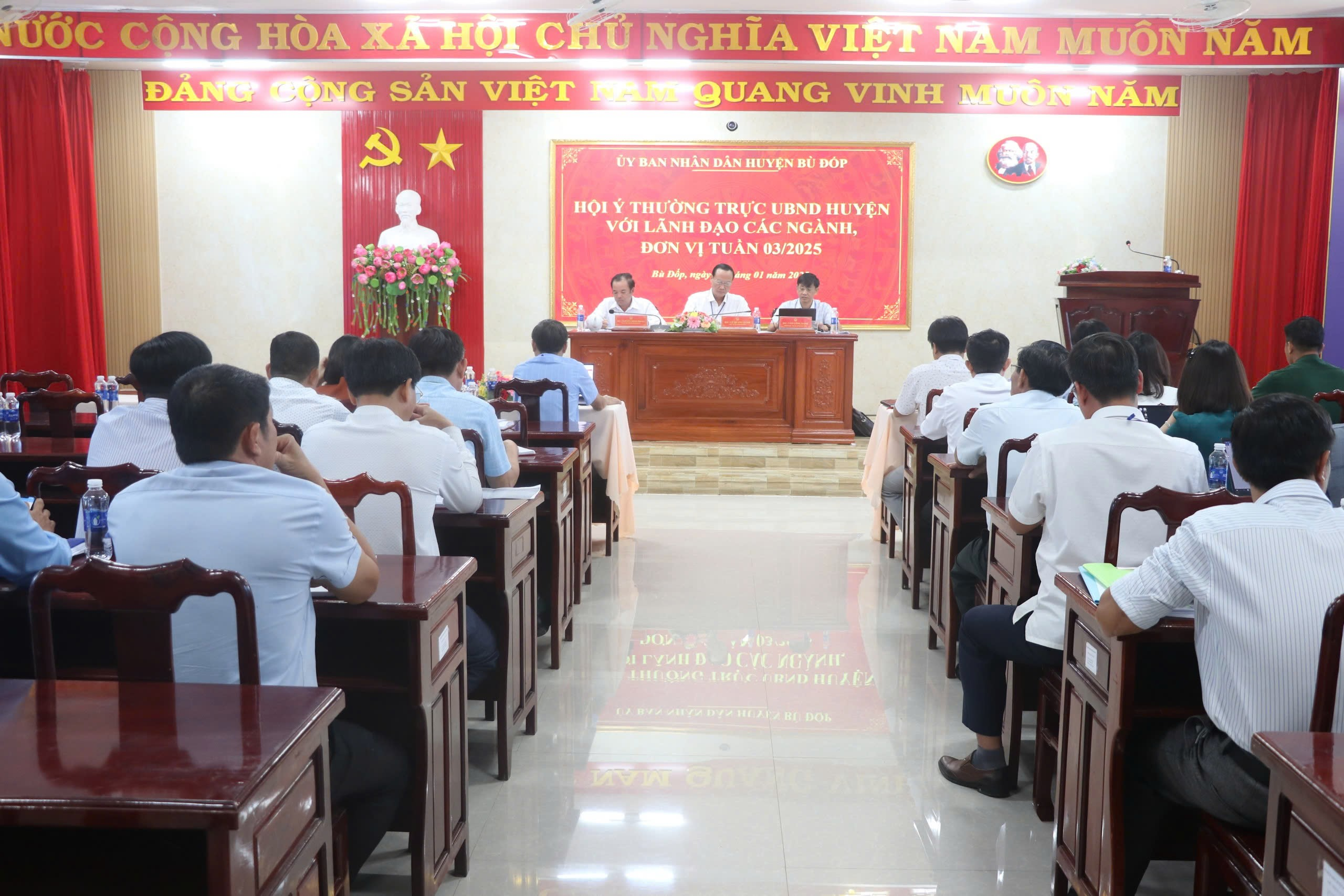 Nhằm trao đổi, thảo luận và thống nhất các vấn đề liên quan đến công tác quản lý nhà nước, kế hoạch các tiêu chí phát triển kinh tế - xã hội của huyện năm 2025, báo cáo chuỗi các hoạt động tết, an sinh xã hội cũng như các nhiệm vụ, dự án trọng điểm của địa phương 2025.