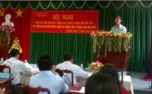 Phát biểu kết luận cuộc họp, ông Đoàn Văn Thảo – Phó Bí thư Huyện ủy - Chủ tịch UBND huyện đánh giá cao những nỗ lực của các ngành, các cấp trong thực hiện nhiệm vụ được giao; đồng thời chỉ đạo các ngành thực hiện tốt một số nội dung trọng tâm trong 6 tháng cuối năm: Tích cực thực hiện các biện pháp nhằm khai thác các nguồn thu vào ngân sách nhà nước, phấn đấu cuối năm 2016 phải đạt chỉ tiêu tỉnh giao; hoàn thành công tác cấp đất an sinh xã hội cho các hộ dân thiếu đất sản xuất; thực hiện có hiệu quả Chương trình mục tiêu quốc gia về nông thôn mới; Tăng cường công tác thông tin, tuyên truyền, phấn đấu cuối năm 2016, tỷ lệ mua bảo hiểm y tế của người dân đạt chỉ tiêu Nghị quyết đề ra; tăng cường thực hiện công tác tuần tra, đấu tranh với các loại tội phạm, trong đó chú trọng về tình hình trộm cắp xe qua biên giới. Cuối cùng, Chủ tịch UBND huyện yêu cầu các ngành, UBND các xã, thị trấn xây dựng kế hoạch cụ thể, phấn đấu hoàn thành tốt nhiệm vụ được giao trong 6 tháng cuối năm 2016.