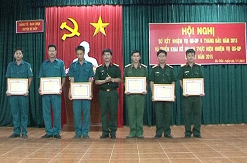 Đánh giá kết quả thực hiện và kế hoạch nhiệm vụ quân sự quốc phòng quý III năm 2015, lãnh đạo BCH Quân sự tỉnh, nhấn mạnh: lực lượng vũ trang huyện Bù Đốp cần tăng cường tuyên truyền nhân dân hạn chế qua lại biên giới trong quá trình sắp diễn ra đại hội đảng bộ huyện; ngăn chặn kịp thời các vụ vi phạm quy chế biên giới; buôn lậu; duy trì nghiêm chế độ trực sẵn sàng chiến đấu bảo vệ các ngày lễ lớn, phòng chống lụt bảo, cứu hộ cứu nạn; tăng cường kiểm tra toàn diện công tác sẵn sàng chiến đấu ở các xã, thị trấn, cơ sở tự vệ. Xây dựng, củng cố văn kiện tác chiến, công trình phòng thủ và xây dựng lực lượng động viên ngày càng chính qui, tinh nhuệ.