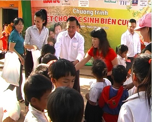 Đoàn đã trao 250 phần quà cho học sinh nghèo gồm một thùng sữa TH True Milk, một phần sữa bột Nutifood, một đôi dép Bitas và 200 ngàn đồng tiền mặt; 40 phần quà cho giáo viên có hoàn cảnh khó khăn, mỗi phần quà trị giá 500 ngàn đồng. Tổng trị giá những phần quà là 120 triệu đồng được Báo tuổi trẻ khu vực Đông nam bộ vận động các đơn vị tài trợ và bạn đọc báo tuổi trẻ để trao tặng cho học sinh nghèo và giáo viên có hoàn cảnh khó khăn tại hai xã biên giới bù đốp nhân dịp xuân ất mùi năm 2015.