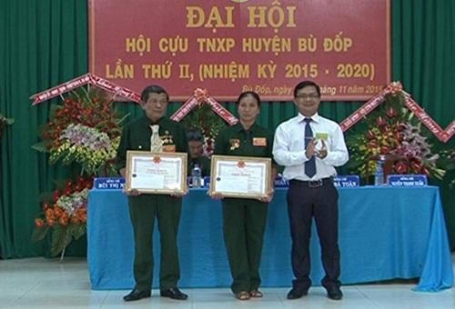 Dịp này hội cựu TNXP tỉnh và UBND huyện Bù Đốp trao tặng giấy khen cho 2 tập thể và 4 cá nhân có thành tích xuất sắc trong xây dựng hội.