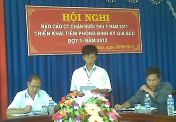 Phát biểu kết thúc Hội nghị, đ/c Lê Minh Lý Phó Chi cục trưởng Chi cục Thú y tỉnh đánh giá cao sự nỗ lực của Trạm thú y, Cán bộ thú y các xã, thị trấn trong công tác phòng chống dịch bệnh, góp phần vào ổn định tình hình chăn nuôi trên địa bàn huyện trong năm 2011; đề nghị UBND các xã, thị trấn chú trọng hơn nữa công tác chăn nuôi, thú y trên địa bàn; kiện toàn BCĐ phòng chống dịch bệnh nguy hiểm cấp xã; chuẩn bị lực lượng phối hợp tốt với Trạm thú y thực hiện đồng thời 02 kế hoạch: Tháng vệ sinh, tiêu độc, khử trùng (từ 20/2-20/3/2012) và Kế hoạch tiêm phòng cho gia súc đợt I/2012 (từ 09/3-30/3/2012), báo cáo kết quả thực hiện và các đề xuất gửi về Sở Nông nghiệp và Phát triển nông thôn; Chi cục Thú y của tỉnh./.