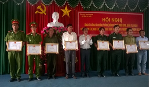 Tại hội nghị tổng kết, UBND huyện đã khen thưởng cho 5 tập thể, 13 cá nhân có thành tích xuất sắc trong công tác quản lý, bảo vệ và phòng chống cháy rừng năm 2015; khen thưởng 3 tập thể và 8 cá nhân hoàn thành xuất sắc nhiệm vụ trong công tác phòng, chống buôn lậu, gian lận thương mại năm 2015.