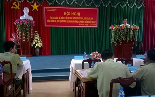 Phát biểu kết luận Hội nghị, đồng chí Diệp Hoàng Thu-Phó Chủ tịch UBND huyện đã đánh giá cao những nỗ lực mà các cơ quan, đơn vị đã thực hiện trong công tác quản lý, bảo vệ, phát triển rừng và công tác phòng chống buôn lậu, gian lận thương mại năm 2015; đồng thời yêu cầu các cơ quan thường trực tiếp tục xây dựng kế hoạch triển khai nhiệm vụ năm 2016, trong đó chú trọng công tác tuyên truyền; công tác phối hợp kiểm tra, kiểm soát và đặc biệt là công tác phòng chống cháy rừng trong mùa khô năm 2016.