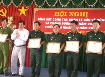 Kết thúc Hội nghị, Phó chủ tịch UBND huyện Đặng Thế Nhàn trao tặng giấy khen cho 05 tập thể và 15 cá nhân có thành tích xuất sắc trong công tác quản lý bảo vệ rừng và 02 giấy khen cho cá nhân có thành tích xuất sắc trong công tác chống buôn lậu-gian lận thương mại năm 2012.