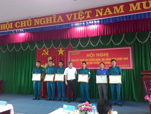 Tại Hội nghị, huyện Bù Đốp cũng đã trao tặng giấy khen cho 06 tập thể và 08 cá nhân và đề nghị tặng UBND tỉnh Bằng khen cho 01 cá nhân có thành tích xuất sắc trong công tác tuyển quân năm 2015.