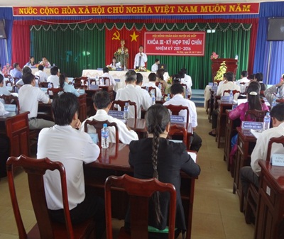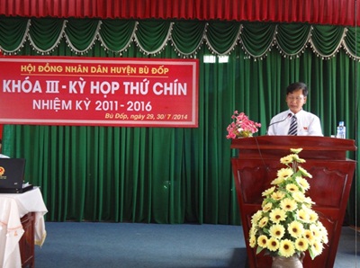 Phát biểu bế mạc kỳ họp, ông Đoàn Văn Thảo – Chủ tịch HĐND huyện nhấn mạnh các nhiệm vụ trọng tâm cần thực hiện trong 6 tháng cuối năm 2014, ngoài ra đánh giá cao công tác chuẩn bị và tổ chức kỳ họp của Thường trực HĐND, UBND, các Ban HĐND huyện và các cơ quan liên quan. Sau kỳ họp, Đề nghị Thường trực HĐND - UBND huyện sớm tổ chức triển khai các Nghị quyết của kỳ họp; Đề nghị các Ban HĐND huyện, các đại biểu HĐND huyện và toàn thể cử tri nêu cao tinh thần trách nhiệm, theo dõi, giám sát việc tổ chức triển khai thực hiện các Nghị quyết của HĐND huyện; theo dõi, đôn đốc các cấp, các ngành giải quyết nội dung kiến nghị trong báo cáo của các Ban HĐND huyện. Các vị đại biểu HĐND huyện báo cáo kết quả kỳ họp thứ Chín của HĐND huyện với cử tri nơi mình ứng cử.