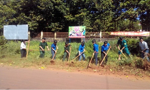 | Thanh niên Bù Đốp phát quang các trục lộ đường chính |