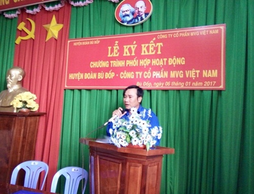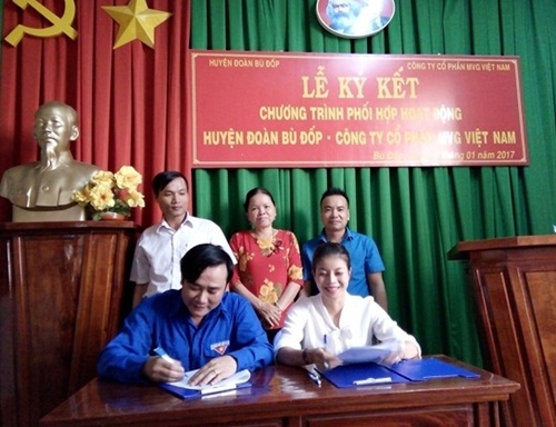 Tại buổi lễ, Huyện Đoàn Bù Đốp đã ký kết chương trình phối hợp với công ty cổ phần MVG Việt Nam về việc cung cấp nước sạch, hệ thống xử lý nước sạch giai đoạn 2017 – 2022. Theo đó, hàng năm hai đơn vị sẽ tổ chức ít nhất 01 hoạt động tập trung tuyên truyền nước sạch, vệ sinh môi trường cho đoàn viên thanh niên và quần chúng nhân dân; Phối hợp tổ chức 02 hoạt động an sinh xã hội trên địa bàn huyện, theo đó, Công ty cổ phần MVG Việt Nam cam kết trong năm 2017, sẽ phối hợp với Huyện Đoàn trao 02 hệ thống máy lọc nước cho nhân dân trên địa bàn huyện (thực hiện công trình thanh niên chào mừng Đại hội Đoàn các cấp) và đến năm 2019 sẽ thành lập Hợp tác xã cung cấp các dịch vụ và xử lý nước sạch cho nhân dân. Ngoài ra, sẽ phối hợp tạo việc làm cho thanh niên tăng thu nhập, phát triển kinh tế từ đó thu hút thanh niên tham gia hoạt động đoàn ổn định, gắn bó lâu dài tại địa phương.
