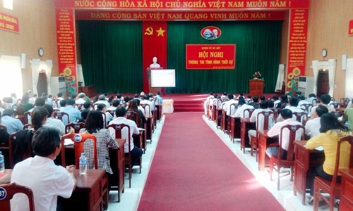 | Các đại biểu dự hội nghị nghe thông tin thời sự |