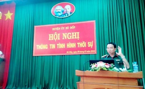 | Đại tá Nguyễn Nhứt - Báo cáo viên Ban Tuyên giáo Trung ương thông tin về tình hình Biển Đông |