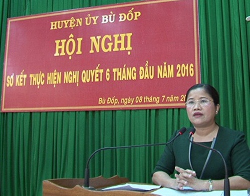 Phát biểu chỉ đạo hội nghị, đồng chí Trần Tuệ Hiền, Phó bí thư Thường trực Tỉnh ủy đã biểu dương những kết quả của huyện Bù Đốp đã đạt được trong 6 tháng đầu năm. Đặc biệt là những giải pháp linh hoạt trong công tác giúp dân ứng phó có hiệu quả trước tình hình thiên tai hết sức gay gắt trên địa bàn huyện. Trước tình hình còn nhiều khó khăn và thách đồng chí Phó bí thư Thường trực Tỉnh ủy yêu cầu huyện Bù Đốp cần tập trung thực hiện tốt các chỉ tiêu của Nghị quyết Đại hội Đảng bộ huyện đã đề ra; triển khai thực hiện cuộc vận động “Người Bình Phước nói lời hay, làm việc tốt”; đẩy nhanh tiến độ cấp đất và ngăn chặn có hiệu quả tình trạng bán điều non trong đồng bào dân tộc thiểu số; đẩy mạnh các mô hình, dự án sản xuất nông nghiệp có tính ứng dụng khoa học kỹ thuật, công nghệ cao để đưa các mô hình trên nhanh chóng áp dụng vào thực tế góp phần nâng cao thu nhập ổn định đời sống của nhân dân.